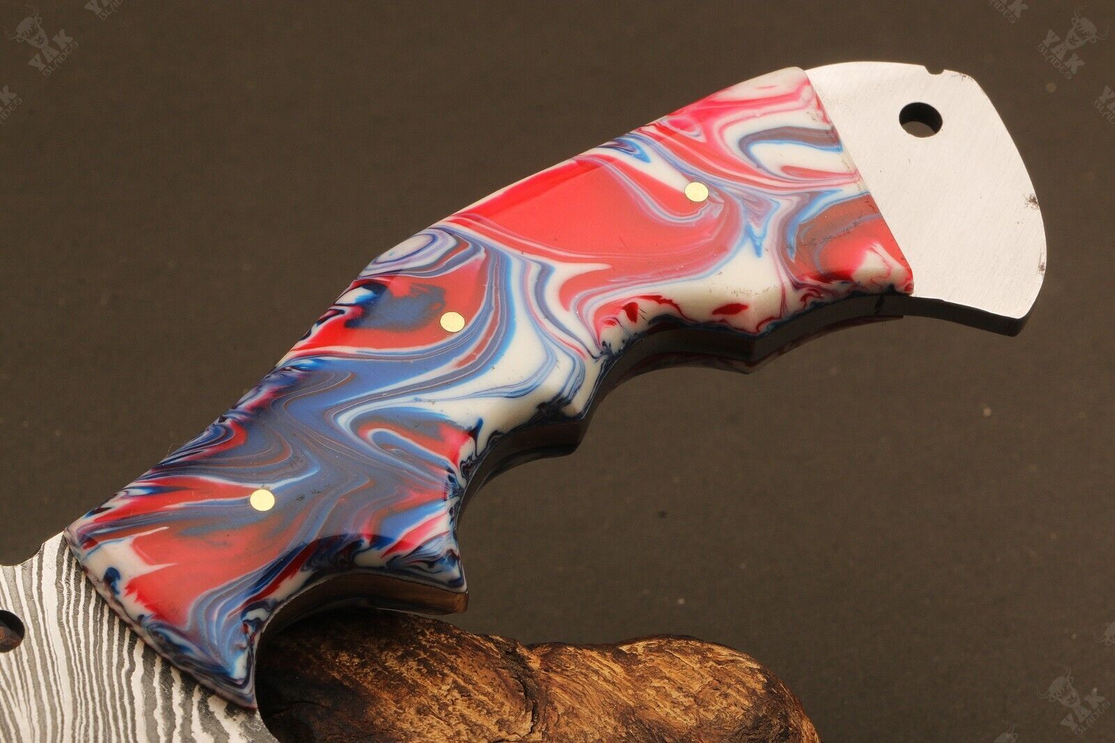 10.5" Handmade Ladder Damascus Steel Tracker Bowie Knife | Resin Handle