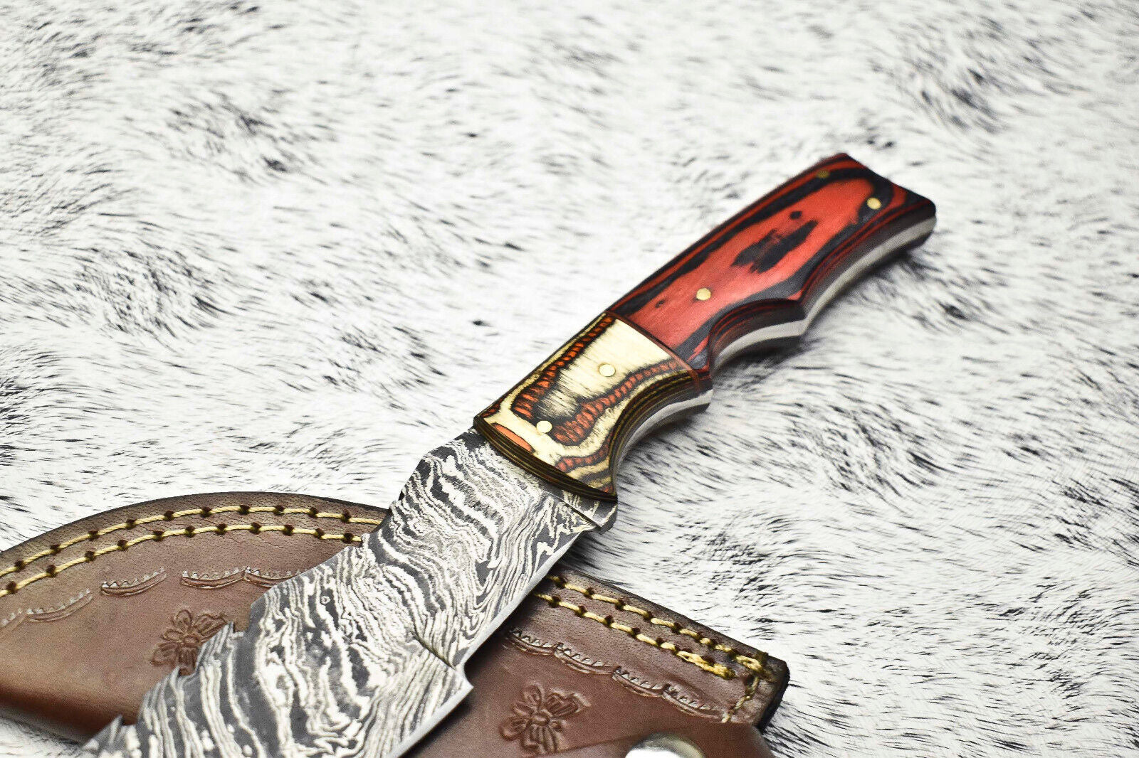 This 10-inch Custom Handmade Forged Damascus Steel Hunting Tracker Knife is built with strength, balance, and precision in mind. Expertly hand-forged, the blade is crafted from 512 layers of stainless steel and high-carbon steel, producing a striking Damascus pattern while ensuring exceptional durability. With a Rockwell hardness of 55–58 HRC, this knife delivers outstanding edge retention and toughness for outdoor tasks. Its design ensures a reliable grip and excellent balance, making it ideal for hunting, camping, bushcraft, and survival use. Every knife undergoes rigorous testing under intense conditions to guarantee quality and performance. Handcrafted by skilled artisans, this knife combines functionality with collectible beauty, offering both reliability in the field and pride of ownership. Care is simple—keep the knife dry and clean after use to preserve the stunning Damascus finish. Each knife is unique due to the handmade forging process, making it a one-of-a-kind tool and collectible piece.