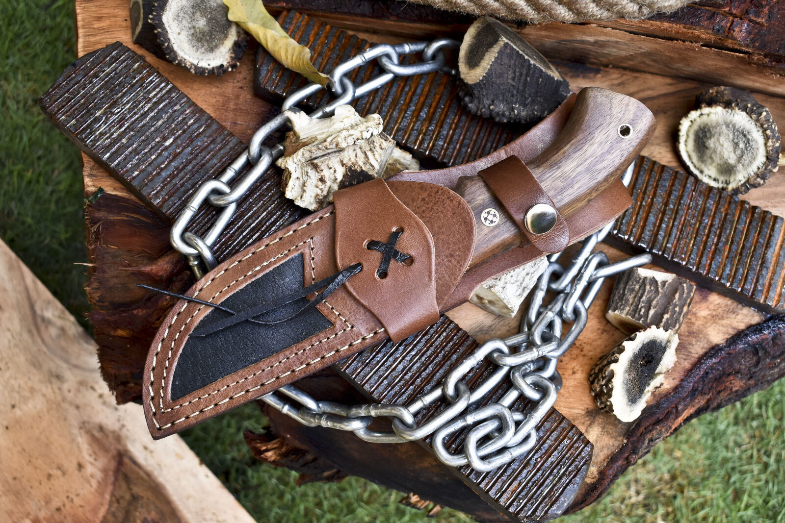 Each piece is individually hand forged—no CNC or prefabricated parts—ensuring that every knife is a one-of-a-kind creation. This damascus skinner hunting knife also comes with a thick, hand-tooled leather sheath for safe carry and storage.