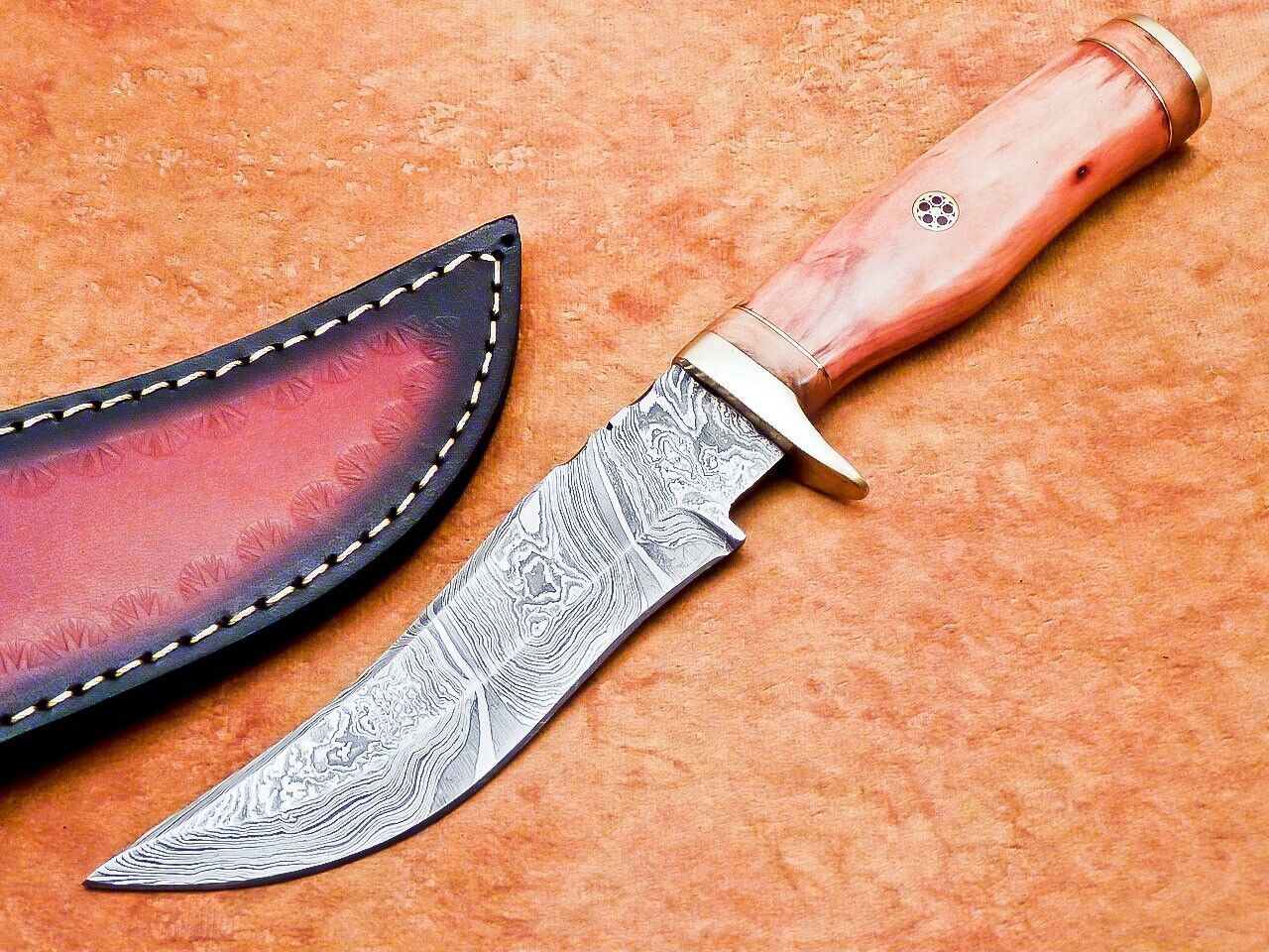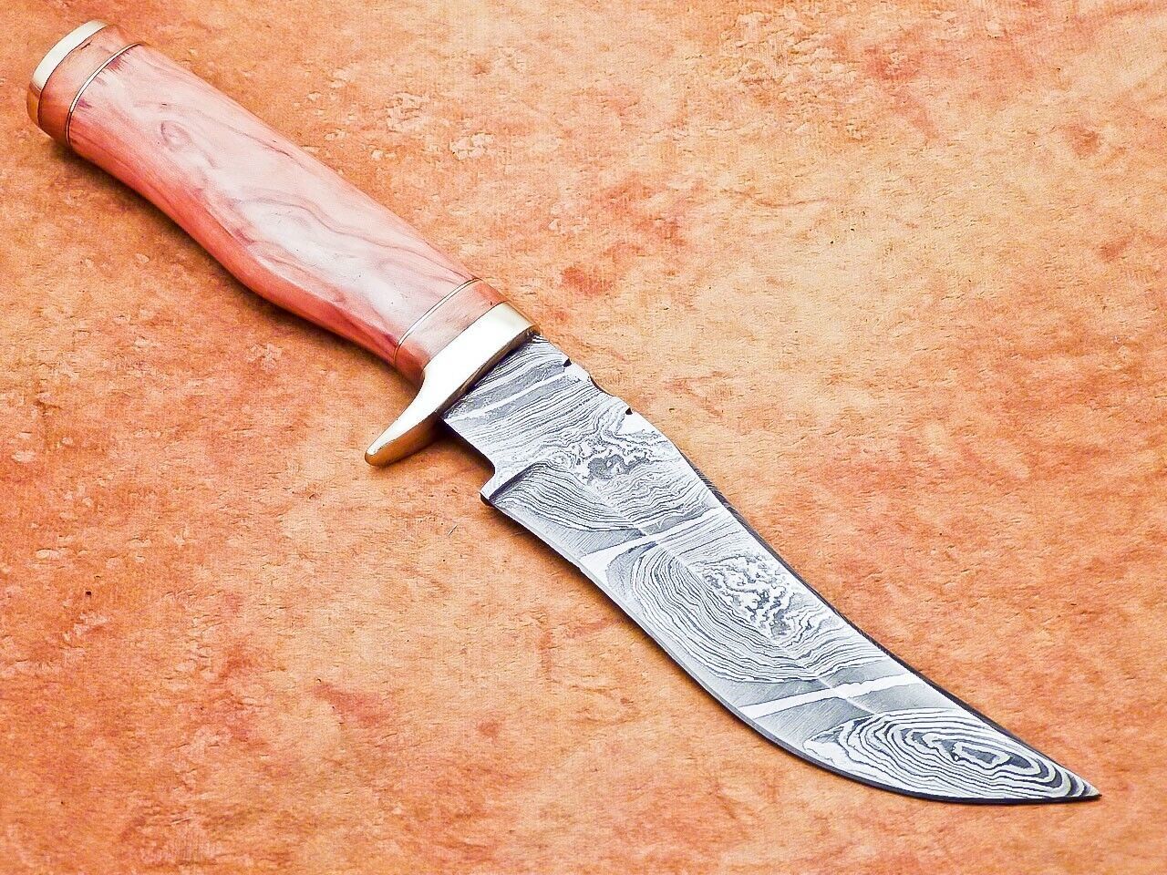 10" Damascus Steel Bowie Knife with Olive Wood Handle