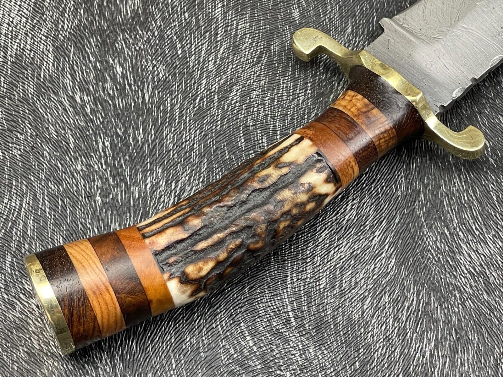 10" Hand Forged Damascus Hunting Knife – Stag Horn & Wood Handle