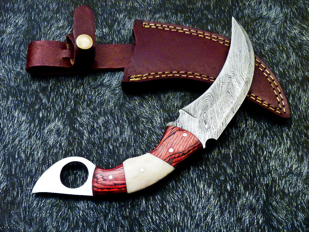 This custom hand forged damascus steel karambit is built for serious outdoor use and long term durability. Each karambit knife is individually handmade, offering balance and a unique Damascus pattern that flows to the cutting edge. Designed for hunters, collectors, and survival enthusiasts, this premium karambit for sale stands out among high quality karambit knives.
