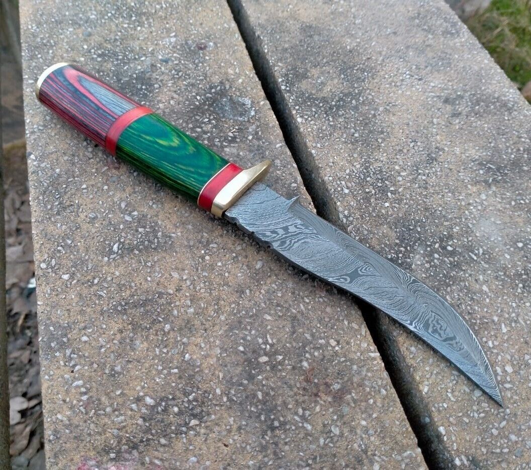 10" Pakka Wood Handle Damascus Bowie Knife – Handmade Forged Hunting Blade
