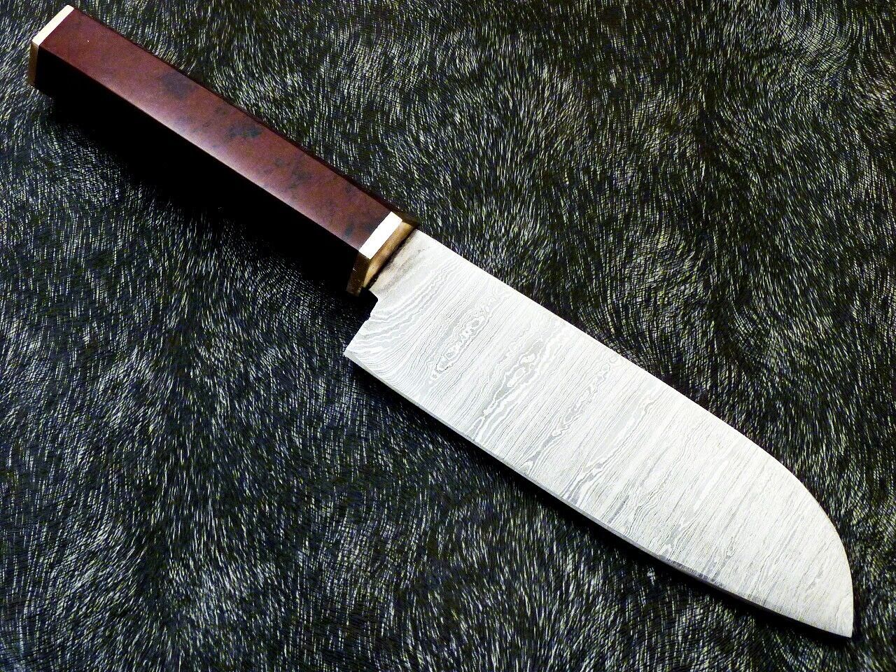The 5-inch handle is crafted from premium resin scales, securely fastened with brass pins and reinforced with a hand casted brass bolster, providing both elegance and a comfortable grip for extended use. With its robust construction and stunning craftsmanship, this knife is a masterpiece designed for professional chefs, home cooks, hunters, and collectors alike.