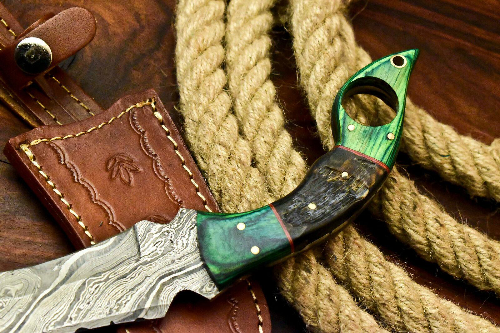 This 11 inch damascus karambit is a powerful full tang blade designed for serious outdoor performance and collectors who value authentic craftsmanship.Each damascus steel karambit showcases a bold layered pattern created through traditional forging methods. Built for reliability, this karambit knife performs exceptionally in hunting and outdoor conditions.