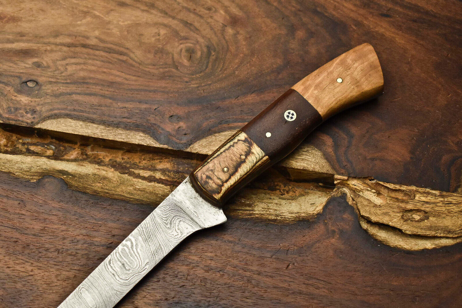 This 12.0" handmade Damascus steel kitchen chef knife is a perfect blend of craftsmanship, durability, and elegance. The blade is forged from a mixture of 1095HC and 15N20 nickel carbon steel, folded multiple times to achieve 384 unique layers. The blade undergoes an acid treatment that reveals the beautiful contrast between the nickel’s satin tone and the deep blackish-gray of high carbon steel, showcasing the iconic Damascus pattern. Designed with a full tang for strength and balance, this chef knife ensures long-lasting sharpness and superior cutting performance. The polished handle provides a comfortable grip, while the razor-sharp edge is perfect for precise slicing, dicing, and chopping. Whether used in a professional kitchen or at home, this Damascus steel chef knife combines functionality with timeless artistry, making it a must-have tool for culinary enthusiasts and collectors alike.