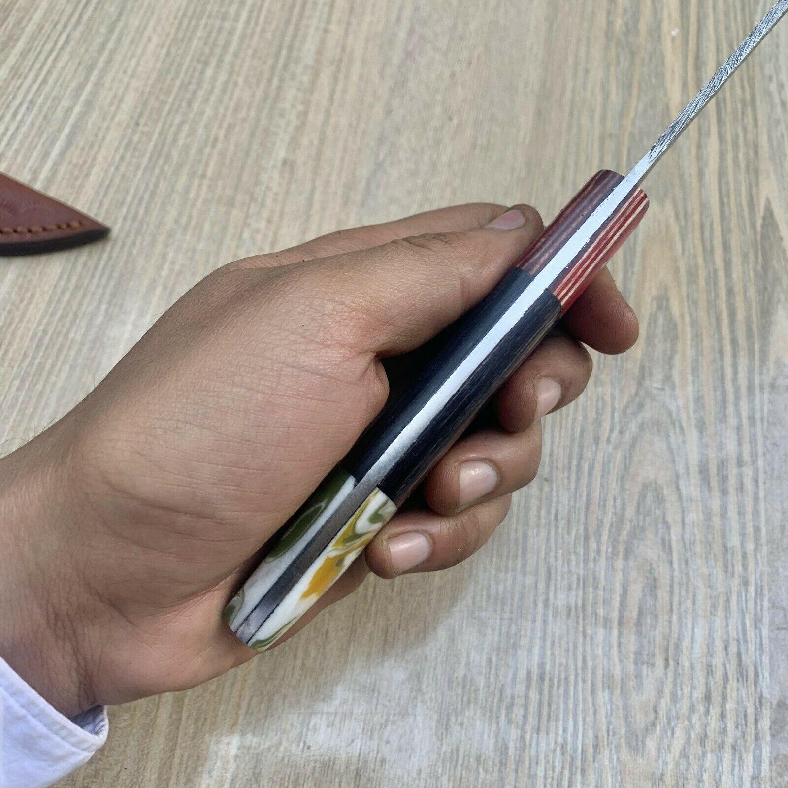 Experience exceptional craftsmanship with this 12.5-inch custom handmade fillet knife, featuring a 7.5-inch Damascus steel blade and a 5-inch wooden handle. Made from high-carbon 1095 & 15N20 tool steel, the blade boasts over 256 meticulously folded layers and a Rockwell hardness of 55–60 HRC, ensuring superior edge retention and cutting precision. Handmade by a master knife maker with 45 years of experience, this fillet knife combines functionality with artistry, making it a standout piece in any knife collection. Designed for precision filleting and versatile use in kitchen or outdoor settings, the full tang construction offers optimal strength and balance. Care instructions include avoiding long-term storage in leather sheaths to preserve the blade’s quality.