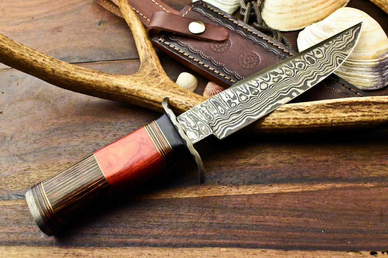 12.5" Damascus Steel Bowie Knife – Walnut Wood Handle & Leather Sheath