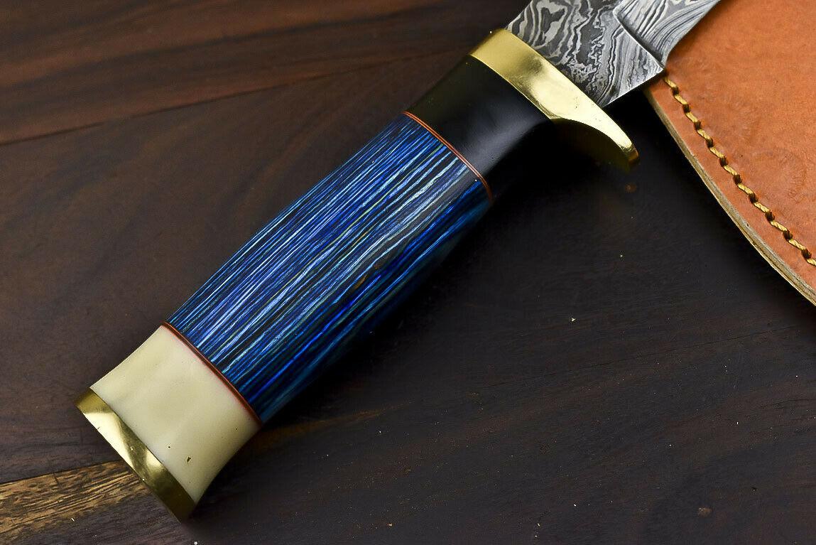 12.5" Handmade Damascus Bowie Knife | Hardwood Handle