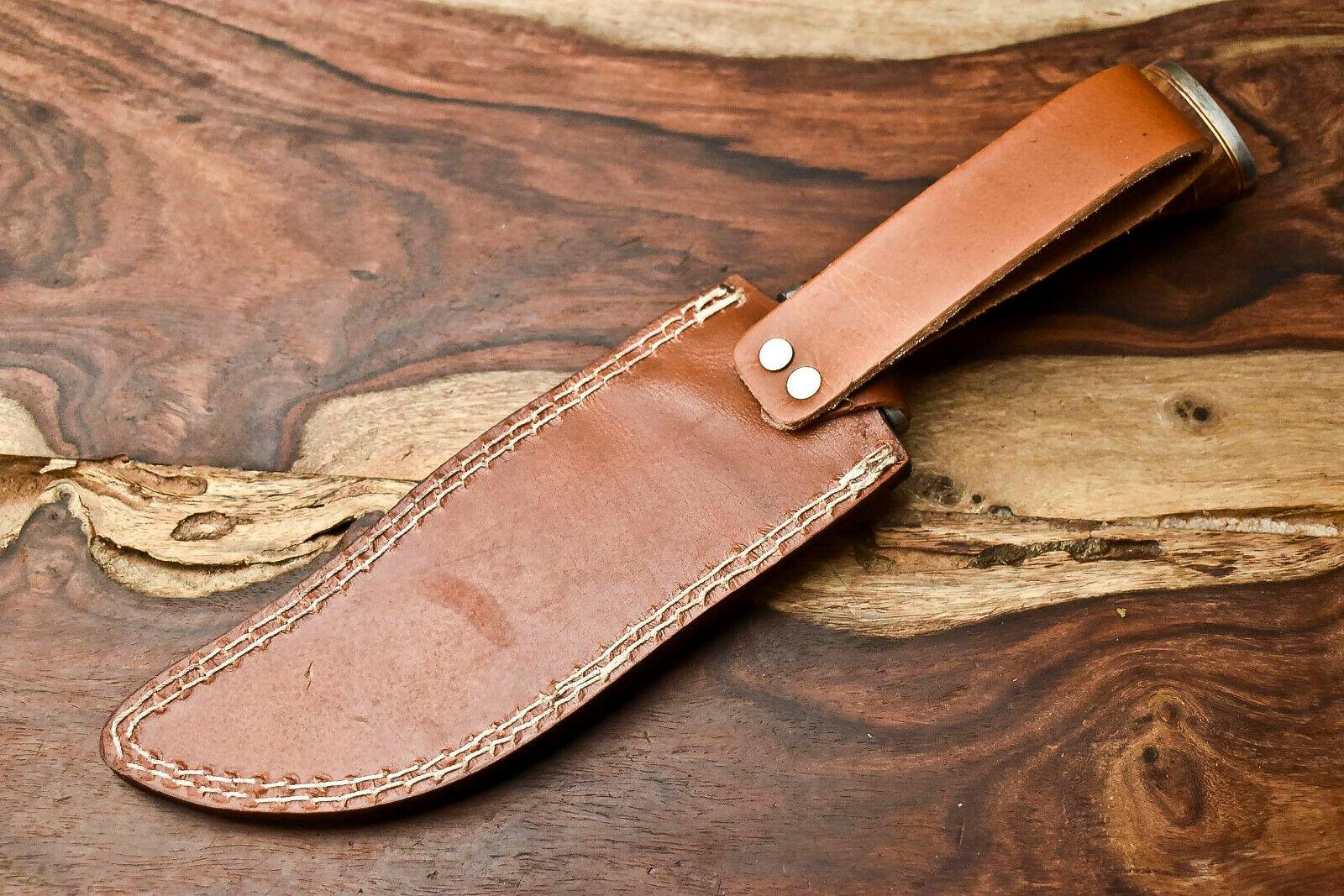 This knife comes with a durable leather sheath for safe storage and convenient portability. Handmade and fully functional, the Heritage Forge Bowie Knife delivers exceptional craftsmanship, performance, and aesthetic appeal. Whether used in the field or displayed in a collection, this 12.5" Damascus hunting knife exemplifies the perfect combination of utility and artistry.