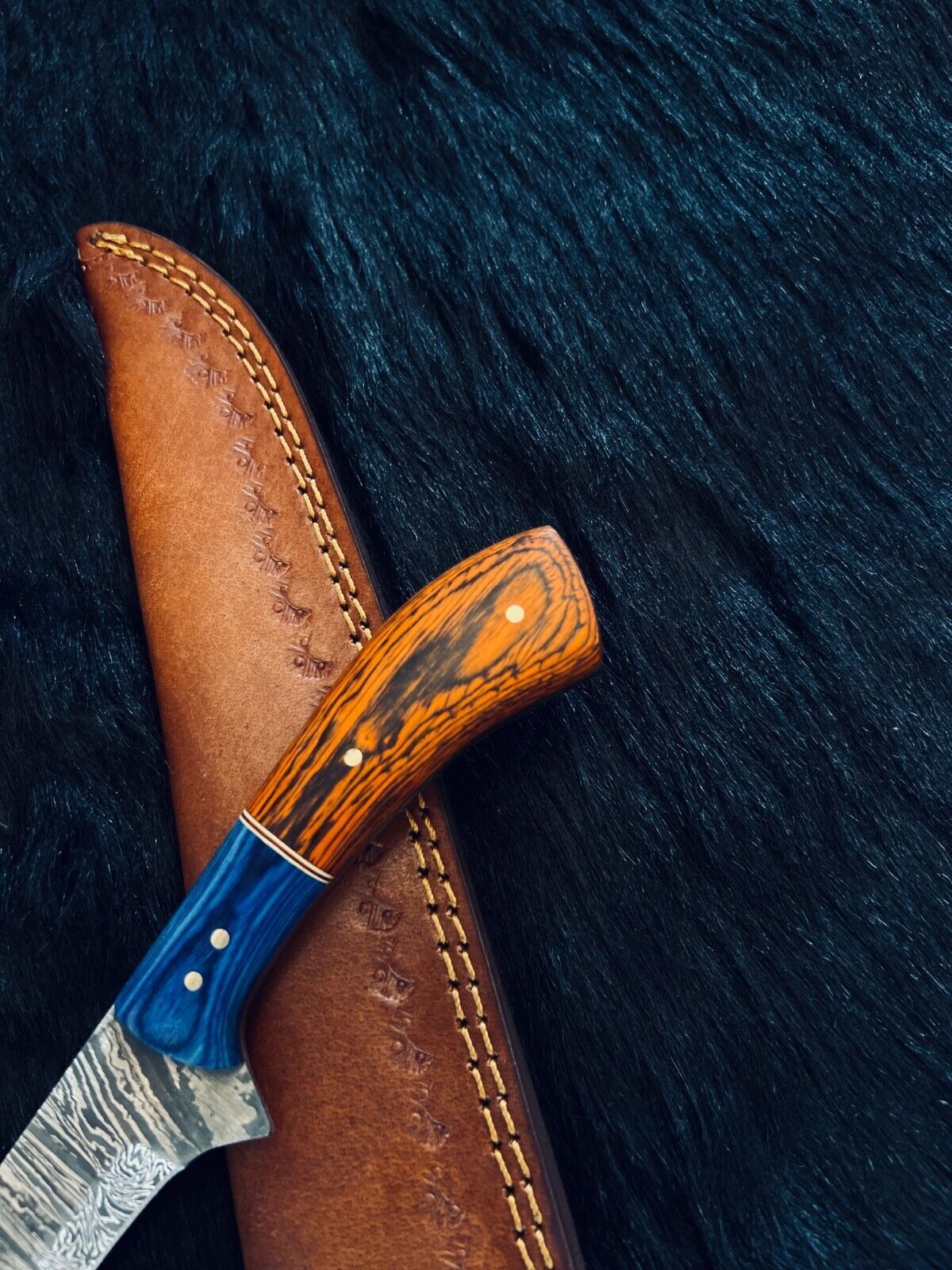- Handle Material: Stained pakka wood with brass spacers & handmade Damascus bolster