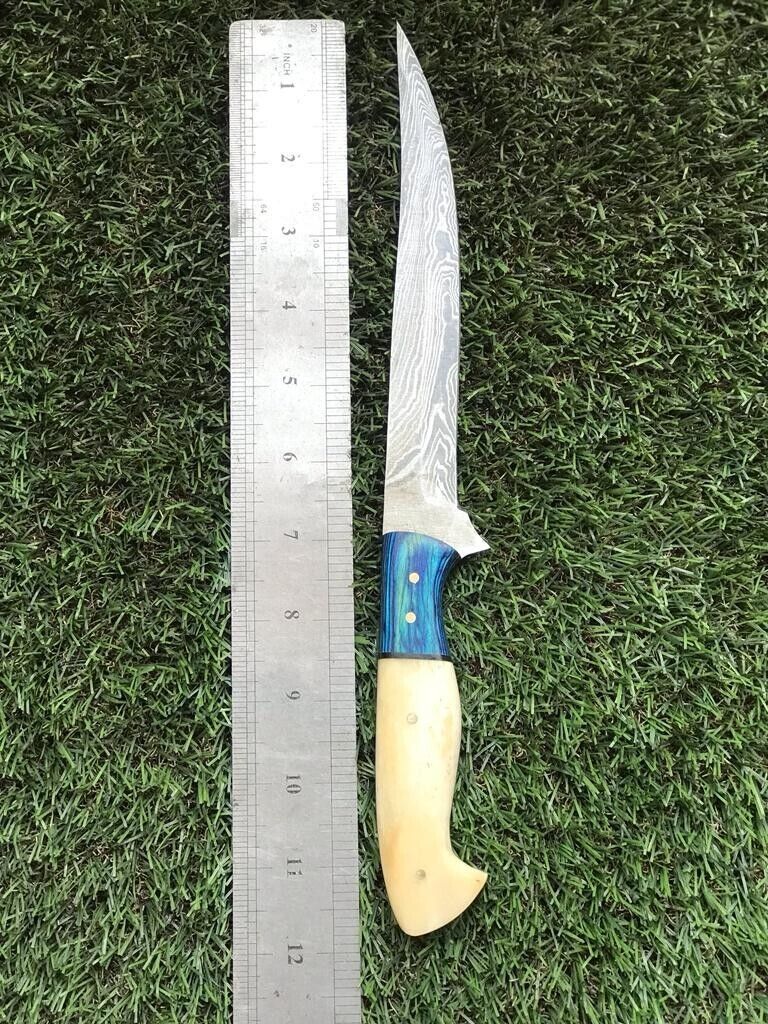 12" Custom Handmade Damascus Steel Fillet, Chef & Hunting Knife with Leather Sheath