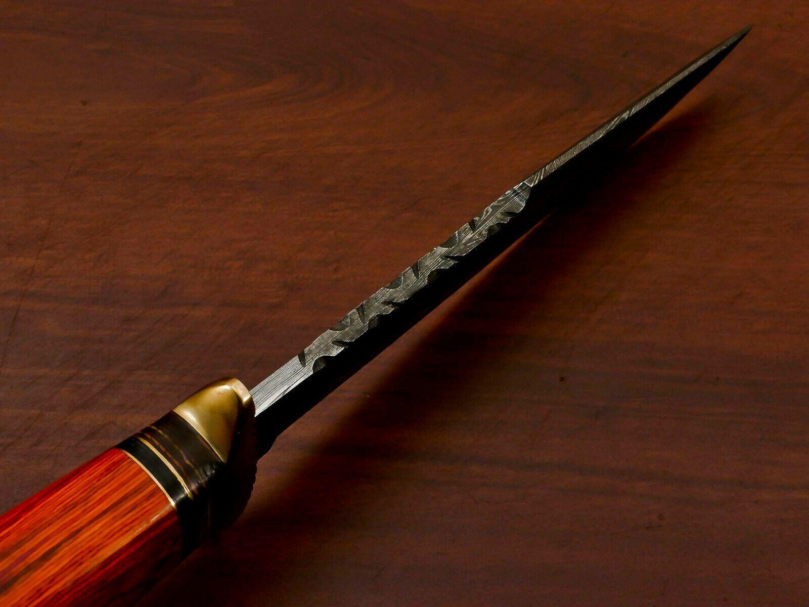 12" Damascus Bowie Knife | Pakka Wood Handle & Brass Guard
