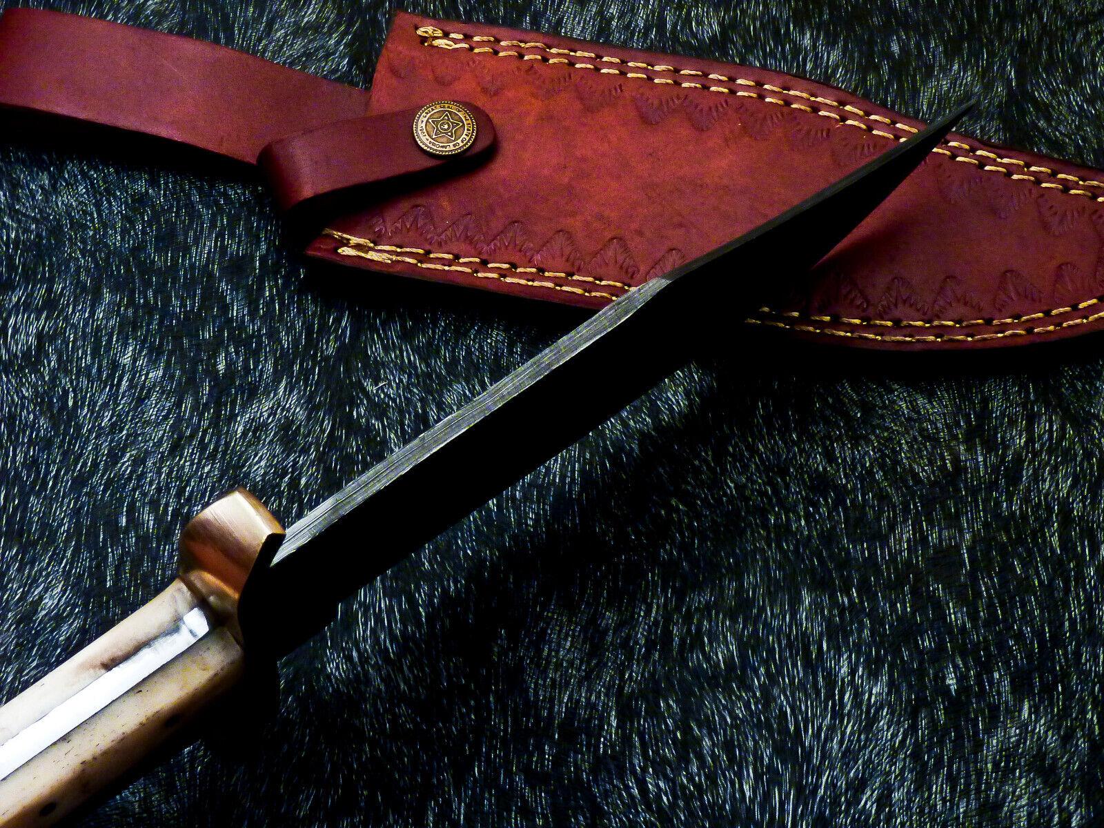 Bold, patriotic, and battle-ready—the 12-inch Bowie Knife from Heritage Forge features a hand-forged Damascus steel blade paired with a striking Texas flag handle made from durable hardwood and camel bone. This knife is a true collector’s piece, designed for those who admire functional craftsmanship with symbolic flair.