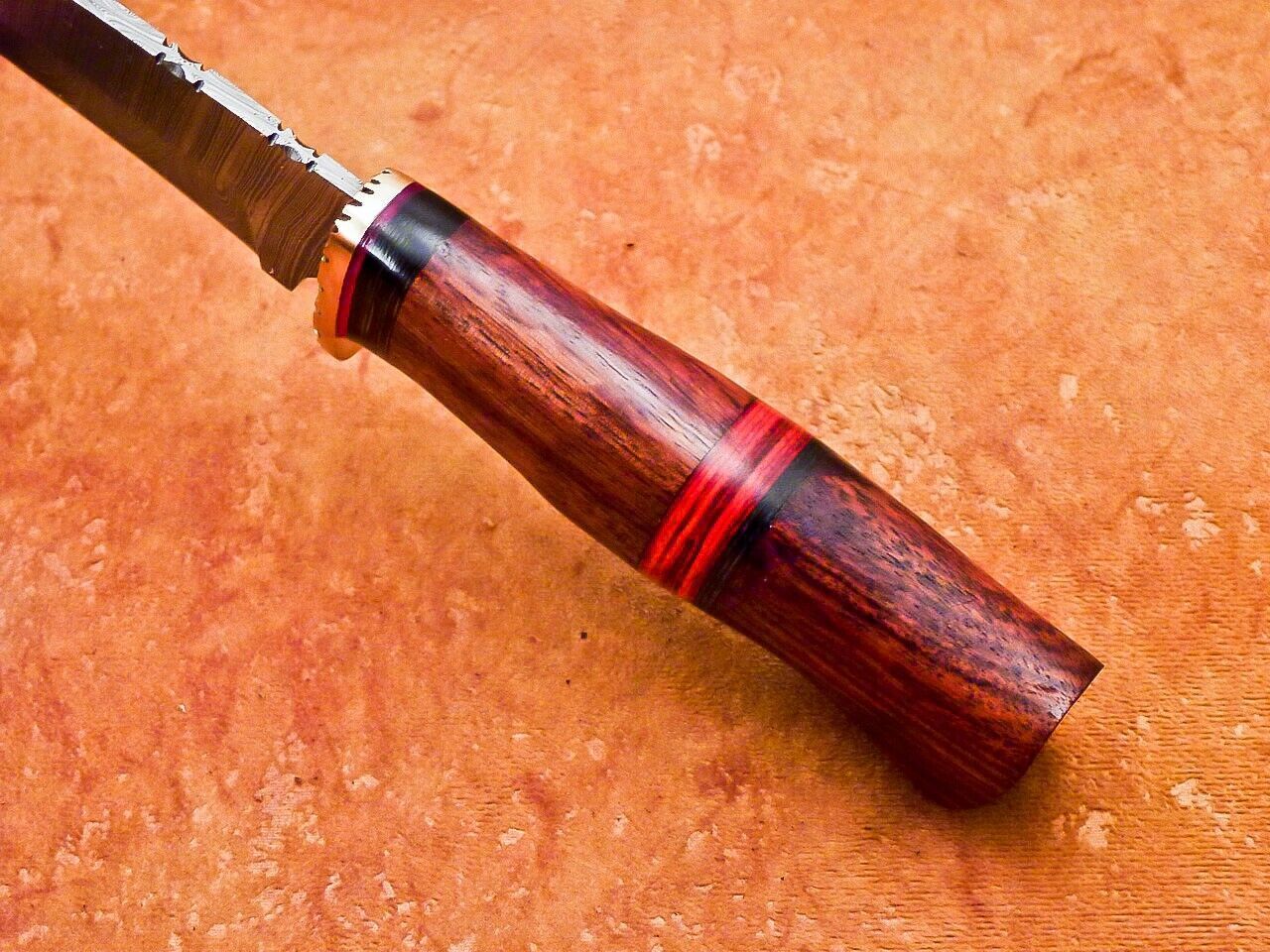 The handle is crafted from natural hardwood, accentuated with brass spacers and a hand-cast brass bolster, offering a secure grip with timeless visual appeal. This knife is not just a tool—it's a collector's piece.