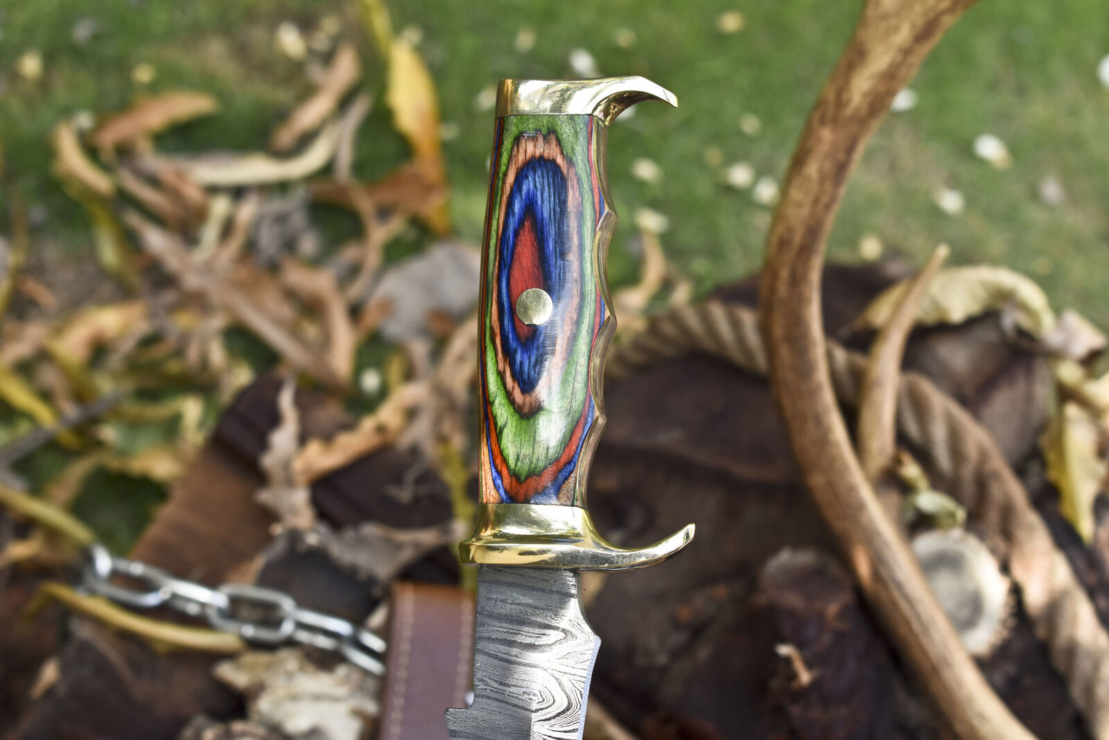 Every knife is handmade, making each piece a unique work of functional art. The knife’s craftsmanship, combined with the iconic Kris blade design, ensures that it is both practical for outdoor use and an impressive addition to any collection. Heritage Forge includes a leather sheath for safe storage and easy portability, making this Damascus Kris Bowie Knife a perfect gift or personal investment in quality.
