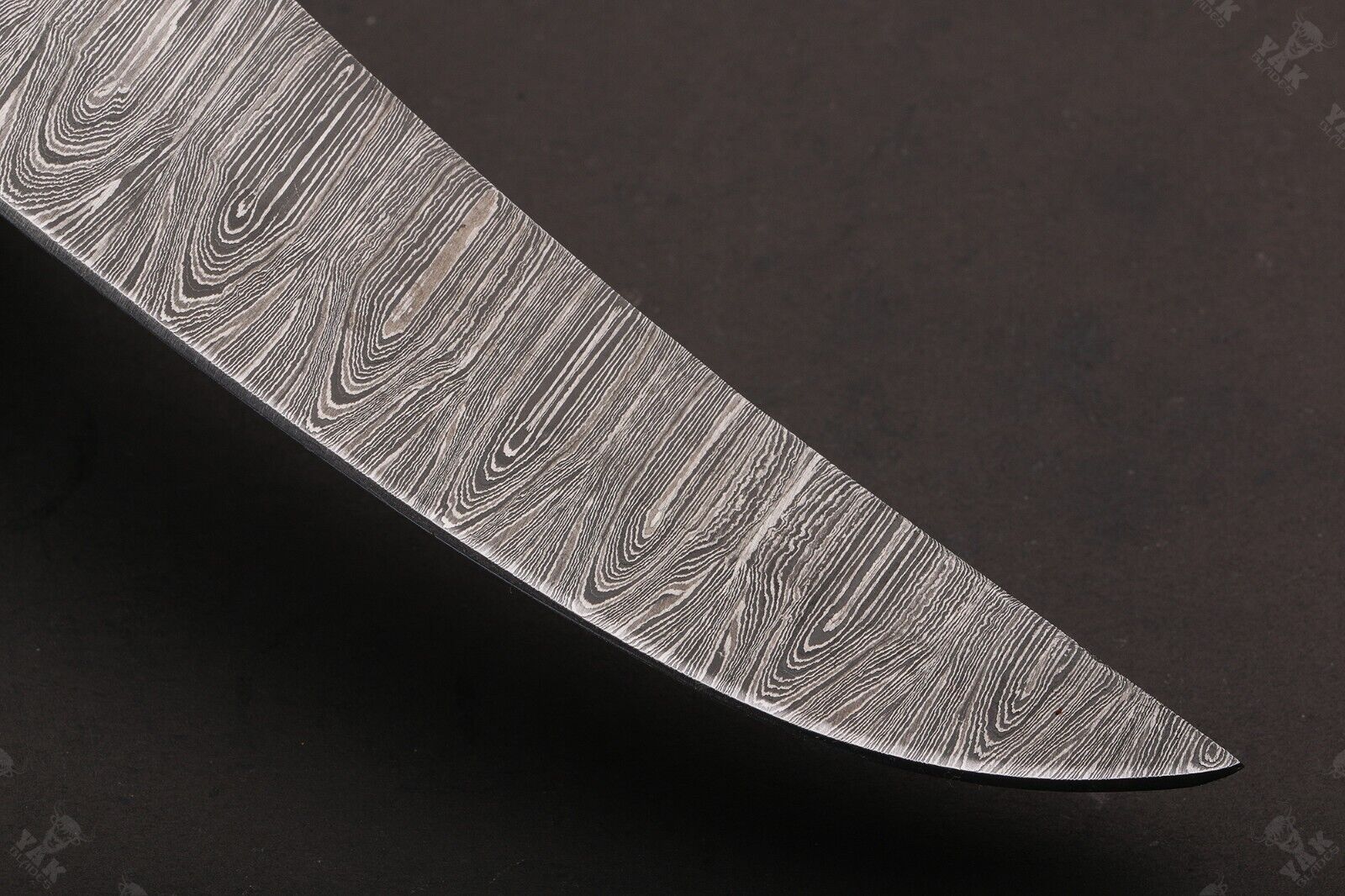 The blade of this damascus steel fillet knife is hand forged using 1095 and 15N20 high carbon steel, layered 512 times for superior strength and cutting efficiency. The twist Damascus pattern flows seamlessly to the edge, creating a micro serrated effect for extended sharpness.