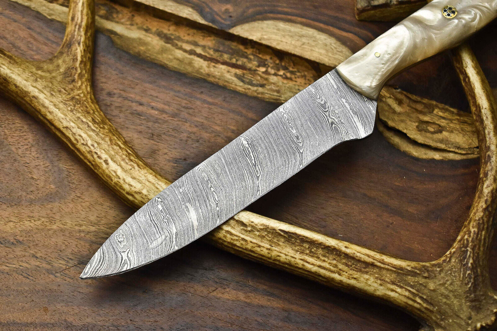 Experience the exceptional craftsmanship of this 12.0" Handmade Damascus Steel Blade Kitchen Chef Full Tang Knife. Each knife is meticulously handmade using authentic Damascus steel, composed of 1095HC and 15N20 nickel carbon. The steel is repeatedly heated, folded, and forged to create 384 unique layers, then acid-etched to reveal the beautiful contrast of satin nickel and dark high-carbon steel. After forging, the blade is sharpened to perfection, and the handle is polished to provide both comfort and durability. No CNC machining is used, ensuring every knife is 100% handmade and entirely unique. Ideal for professional chefs, cooking enthusiasts, and collectors, this knife combines artistry, strength, and functionality.