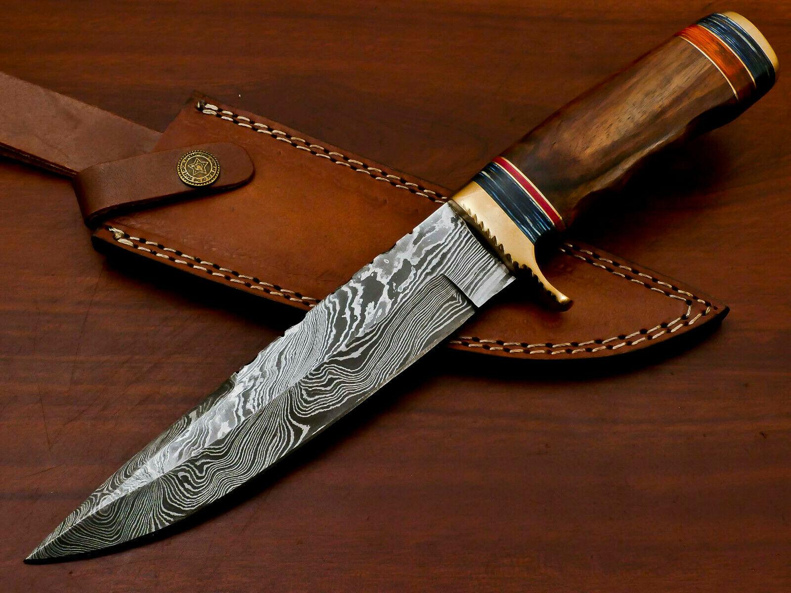 12" Handmade Damascus Bowie Hunting Knife | Rose Wood & Pakka Wood Handle
