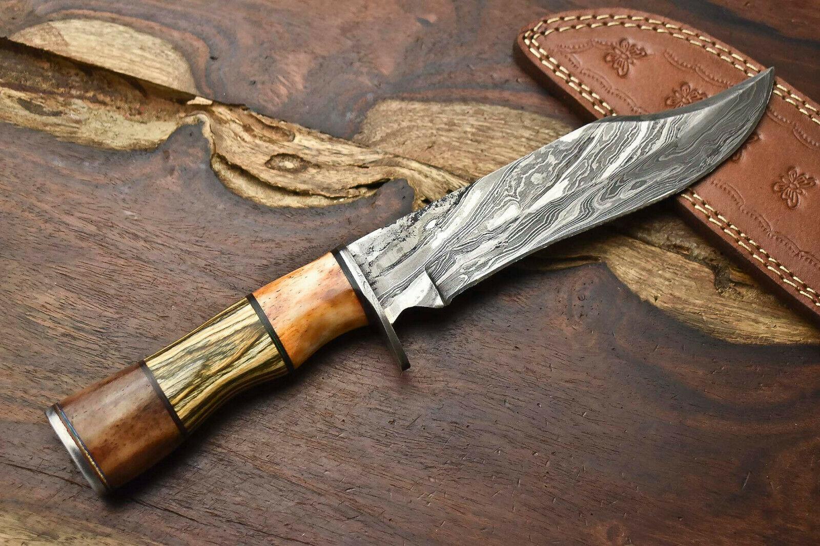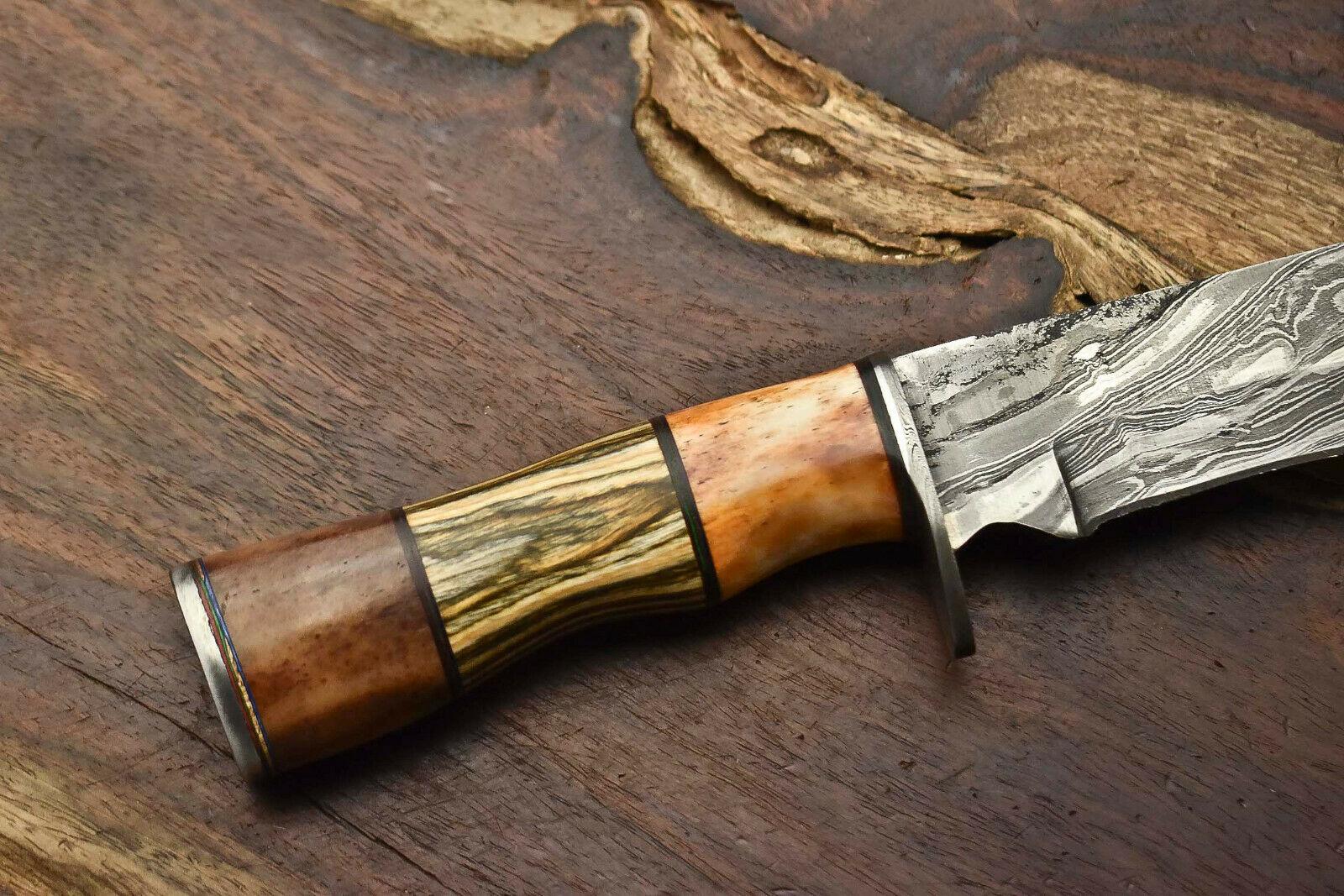 12" Handmade Damascus Bowie Knife – Hardwood Handle & 384-Layer Blade
