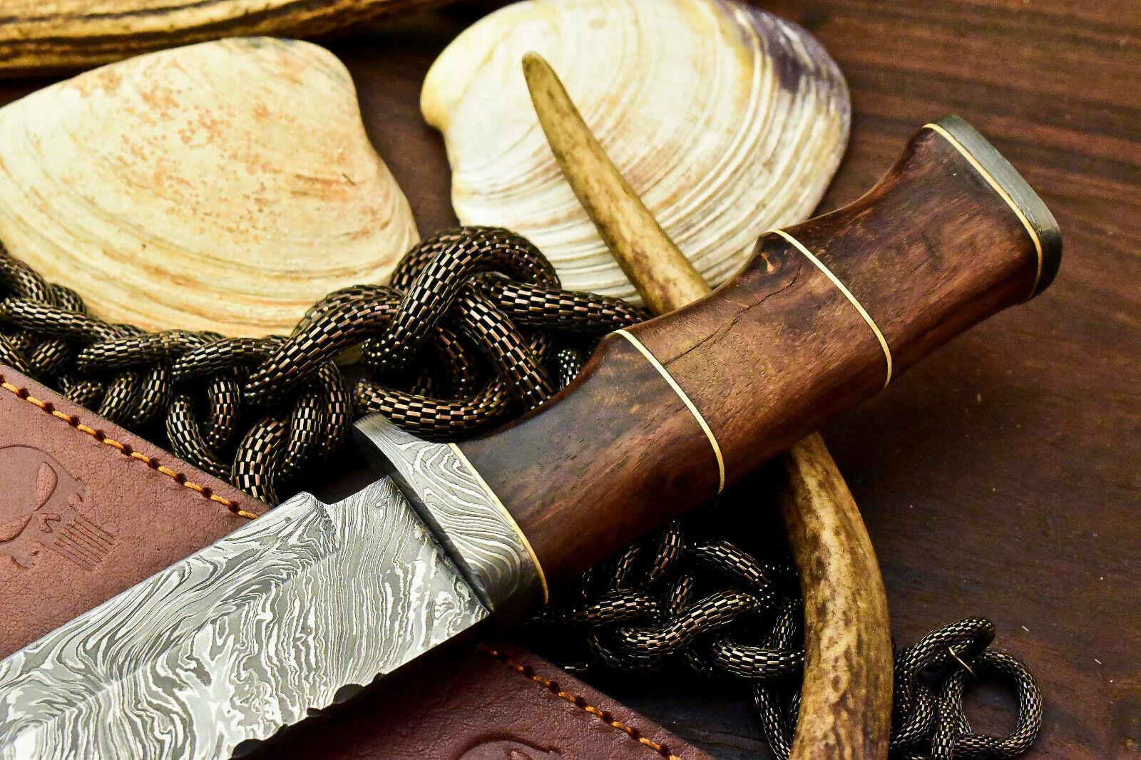 With an overall length of 12 inches, featuring a 7.5-inch blade and a 4.5-inch walnut wood handle, this knife offers excellent balance and control. The full tang construction ensures strength and reliability, while the polished walnut handle delivers a natural, ergonomic grip that enhances handling during use.