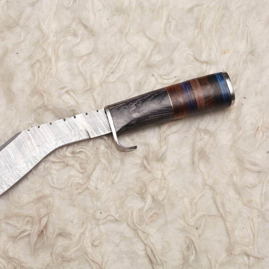 12" Handmade Damascus Kukri Bowie Knife | Hardwood Handle for Outdoor Hunting
