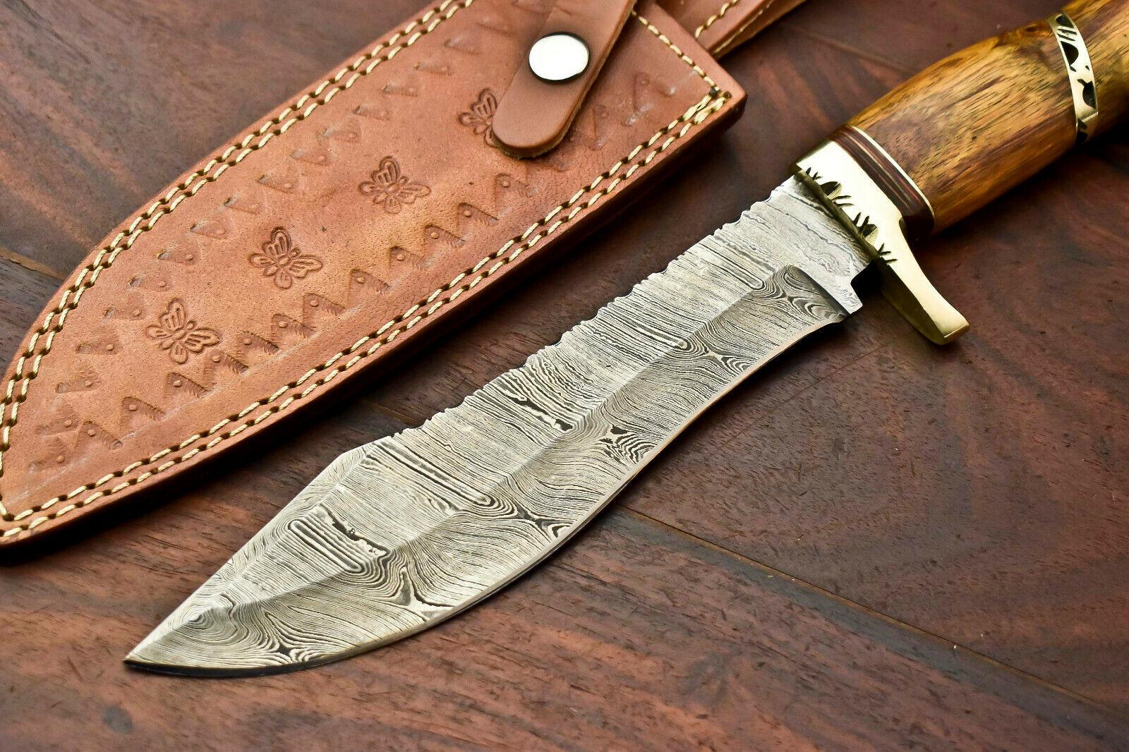 12" Handmade Damascus Steel Bowie Knife with Walnut Wood Handle