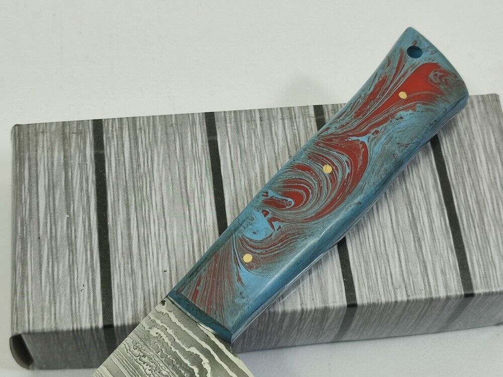 12" Handmade Fixed Damascus Blade Resin Kitchen Chef Knife Full Tang with Sheath