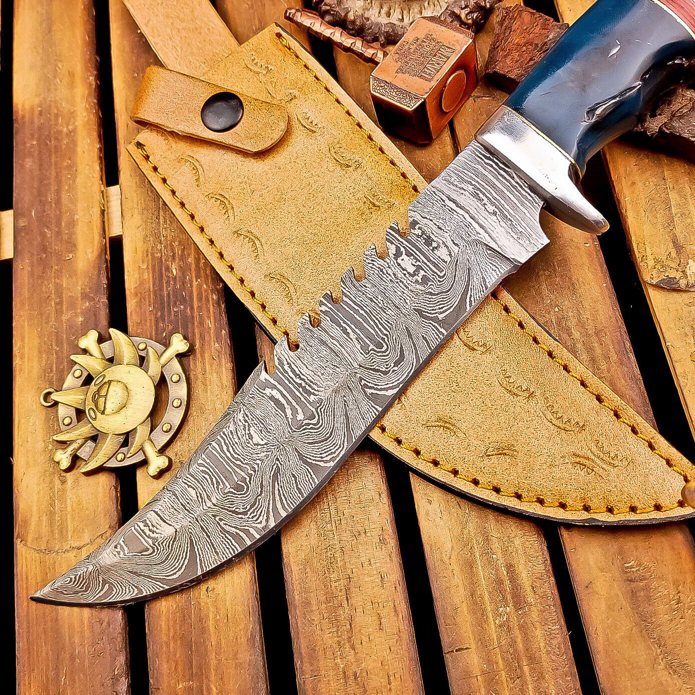 12 Inch Custom Damascus Bowie Knife with Resin Handle and Steel Bolster