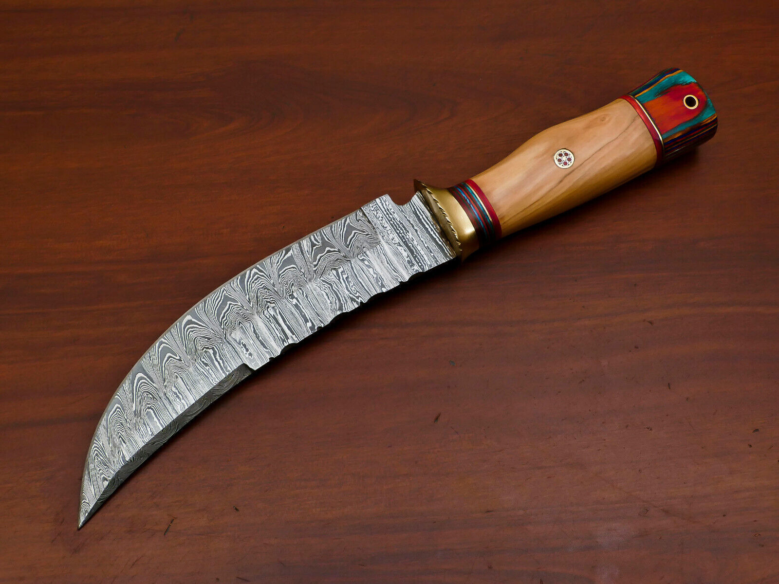 12 Inch Damascus Steel Bowie Knife with Olive and Pakka Wood Handle
