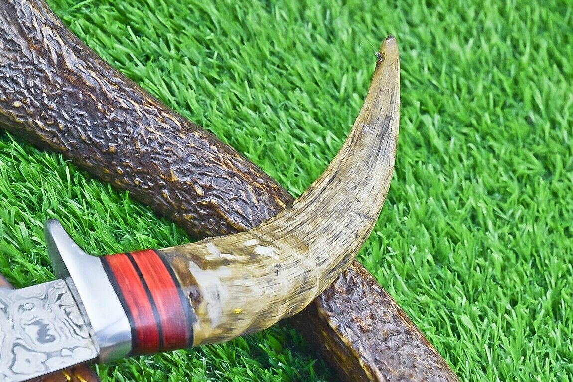 12 Inch Damascus Steel Bowie Knife with Ram Horn and Wood Handle