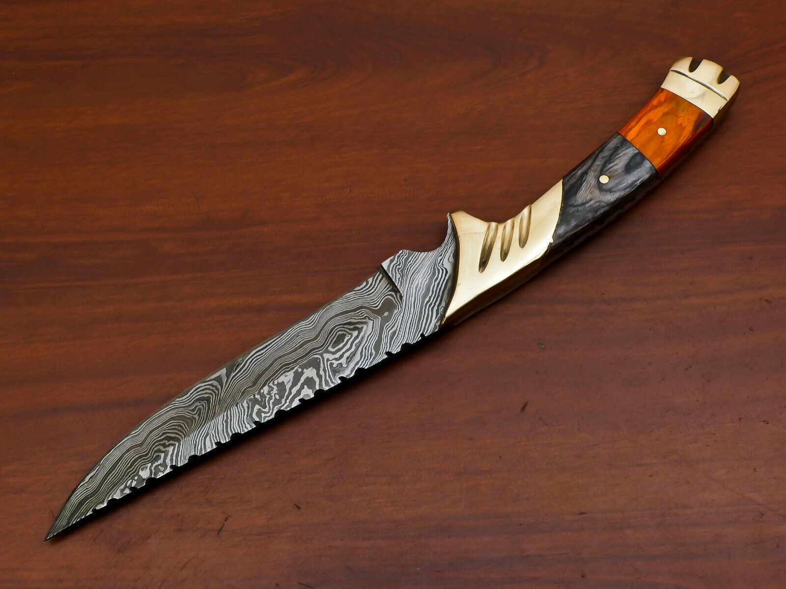 Forged in Pakistan, this knife is ideal for those seeking a powerful, reliable, and beautifully designed Damascus Bowie knife for field use or collection.