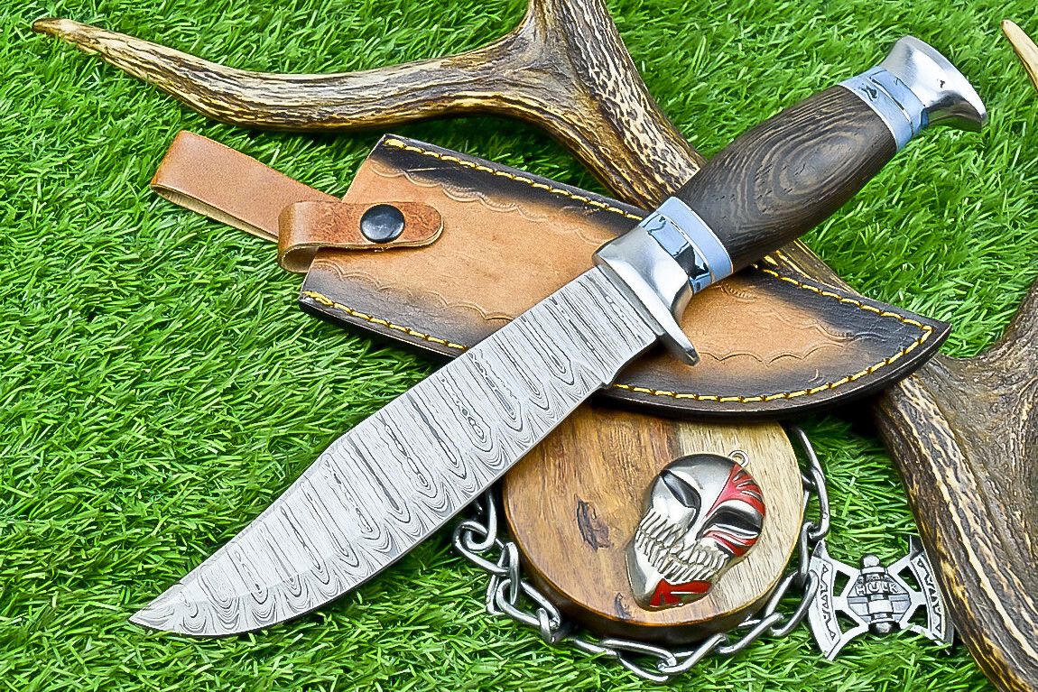 12" Premium Handmade Damascus Steel Bowie Knife – Outdoor Hunting & Camping Knife With Wood Handle