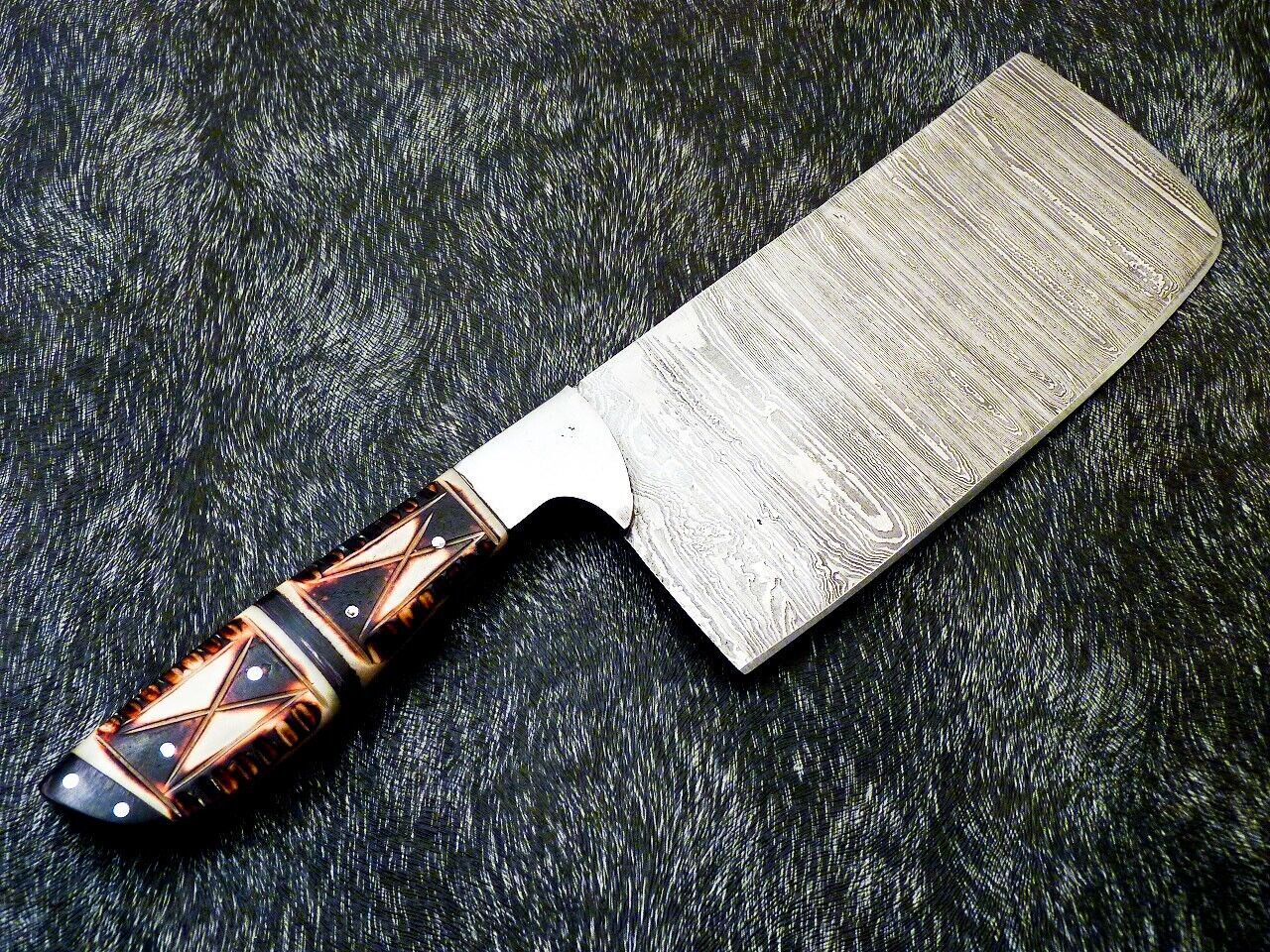All our knives are 100% handmade, durable, and uniquely crafted. This beautiful custom handmade Damascus chef chopper knife is perfect for both professional chefs and cooking enthusiasts.