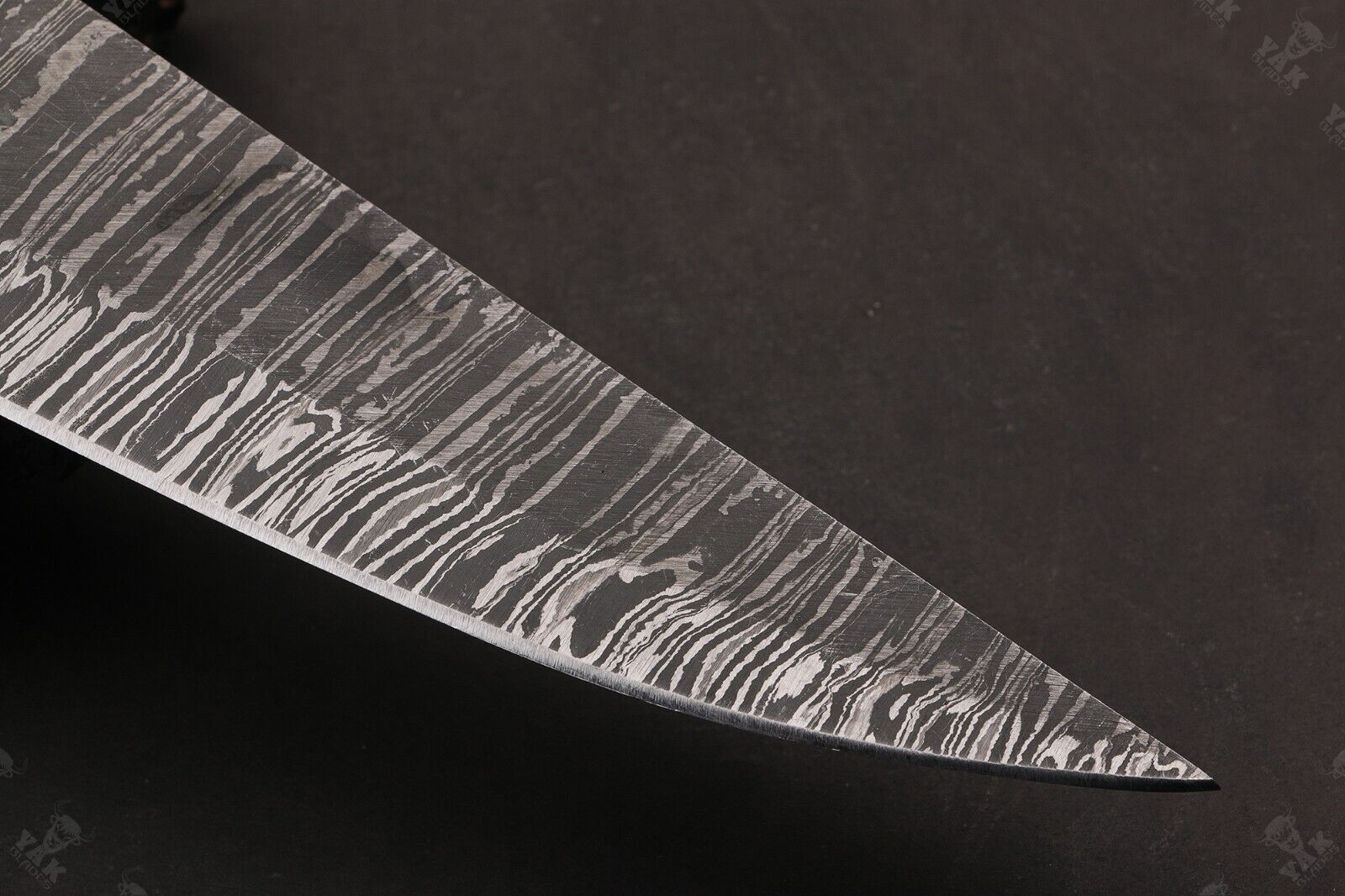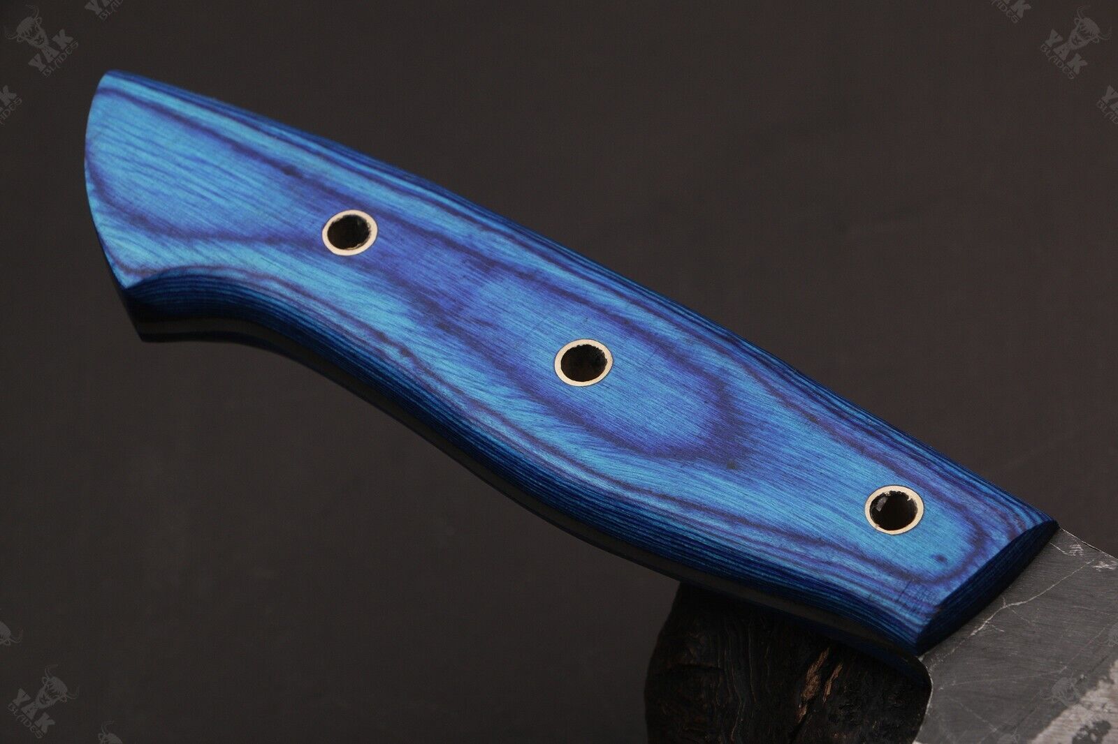 This 13.5-inch custom handmade Santoku chef knife is crafted from high-quality fire Damascus steel, making it a versatile and reliable tool for kitchen, camping, and hunting use. The blade, measuring approximately 8.05 inches, is hand forged with layers of Damascus steel that create a stunning fire pattern while providing exceptional cutting performance and edge retention. The 5-inch handle is beautifully designed with stained camel bone and natural wood, accented by brass spacers and a handmade Damascus steel bolster for strength and elegance. Each knife is fully functional, 100% handmade, and built with a robust 4mm thick blade that offers both durability and precision. Designed by YAK KNIVES, this Santoku chef knife is not only a masterpiece in craftsmanship but also a practical tool that stays sharp thanks to its unique saw-blade effect created by layered forging. Whether used in the kitchen or outdoors, this knife makes a remarkable gift for chefs, collectors, hunters, and adventurers.