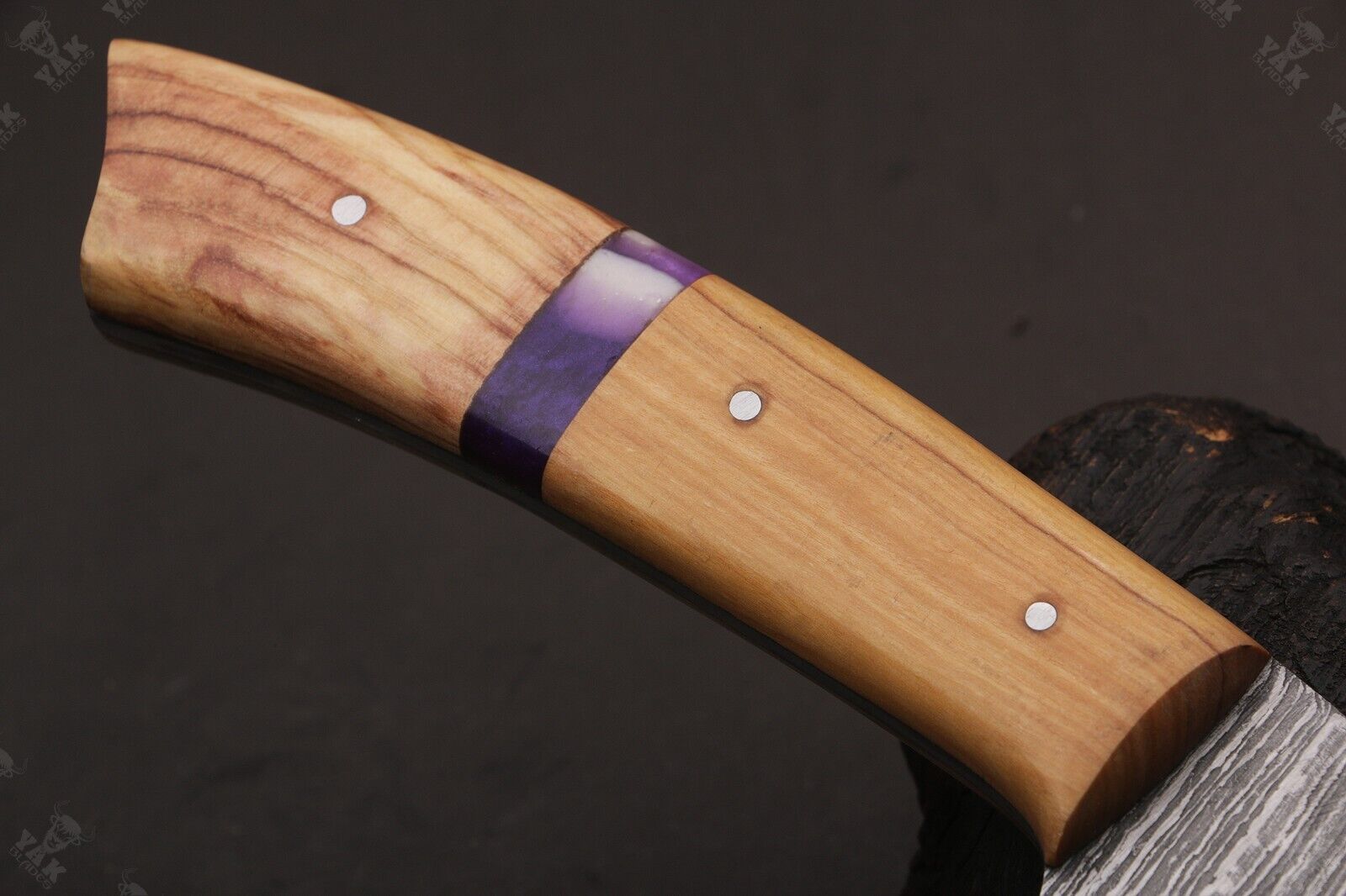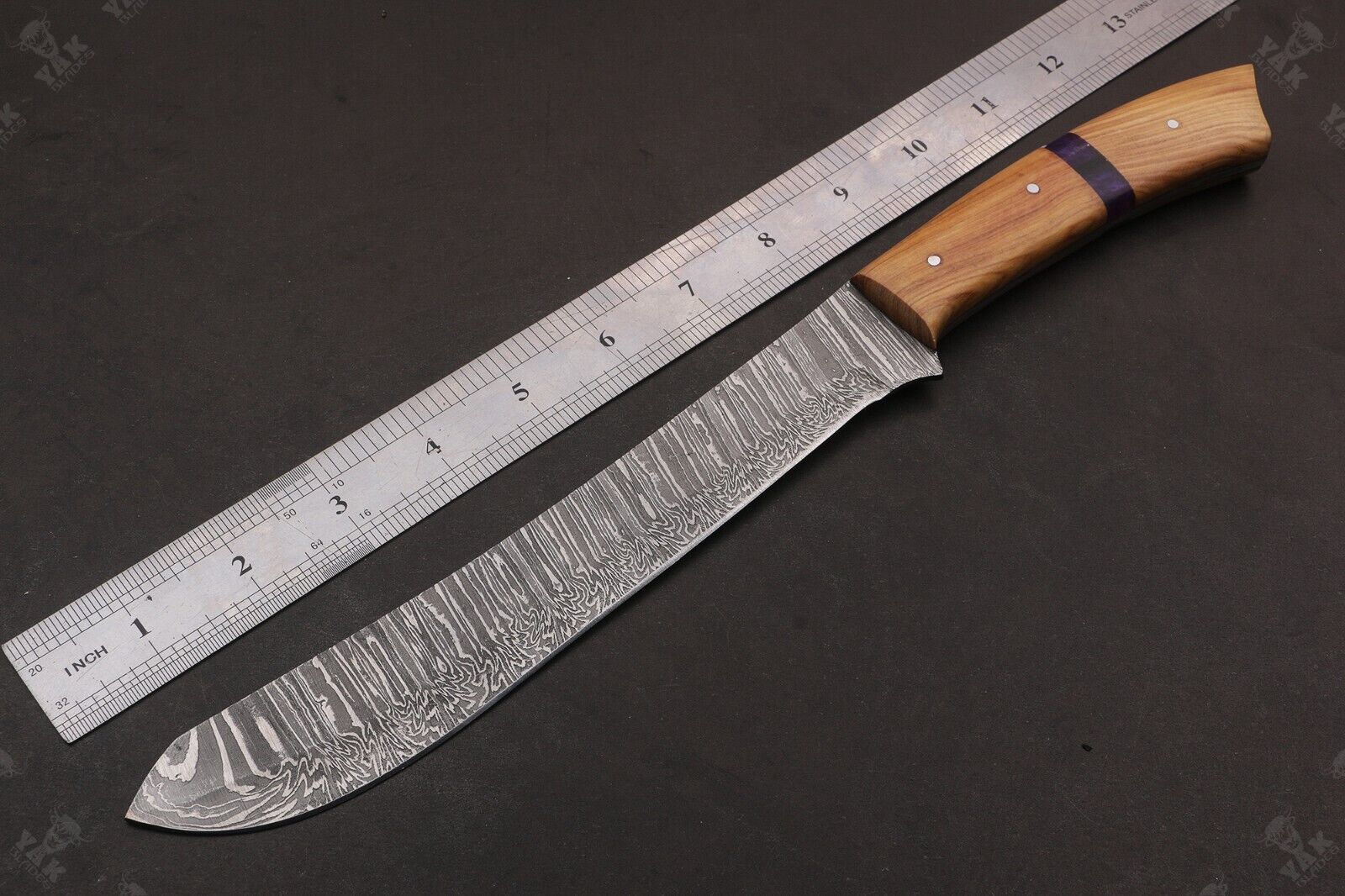 - Handmade Damascus steel bolster