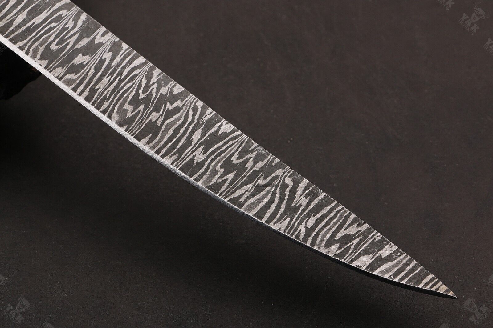 The blade of this custom fillet knife is hand forged through hours of folding and hammering. The layered construction flows beautifully to the edge, creating a micro serrated effect that allows this damascus steel fillet knife to keep cutting longer than ordinary blades. Ideal as a damascus fish knife or damascus fishing knife, it ensures clean, precise fillets every time.