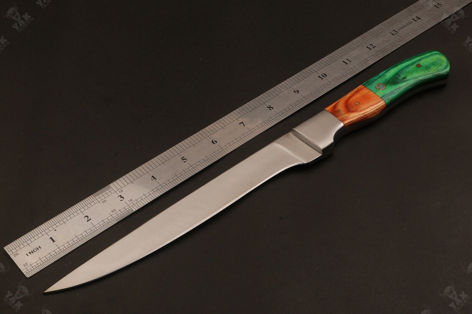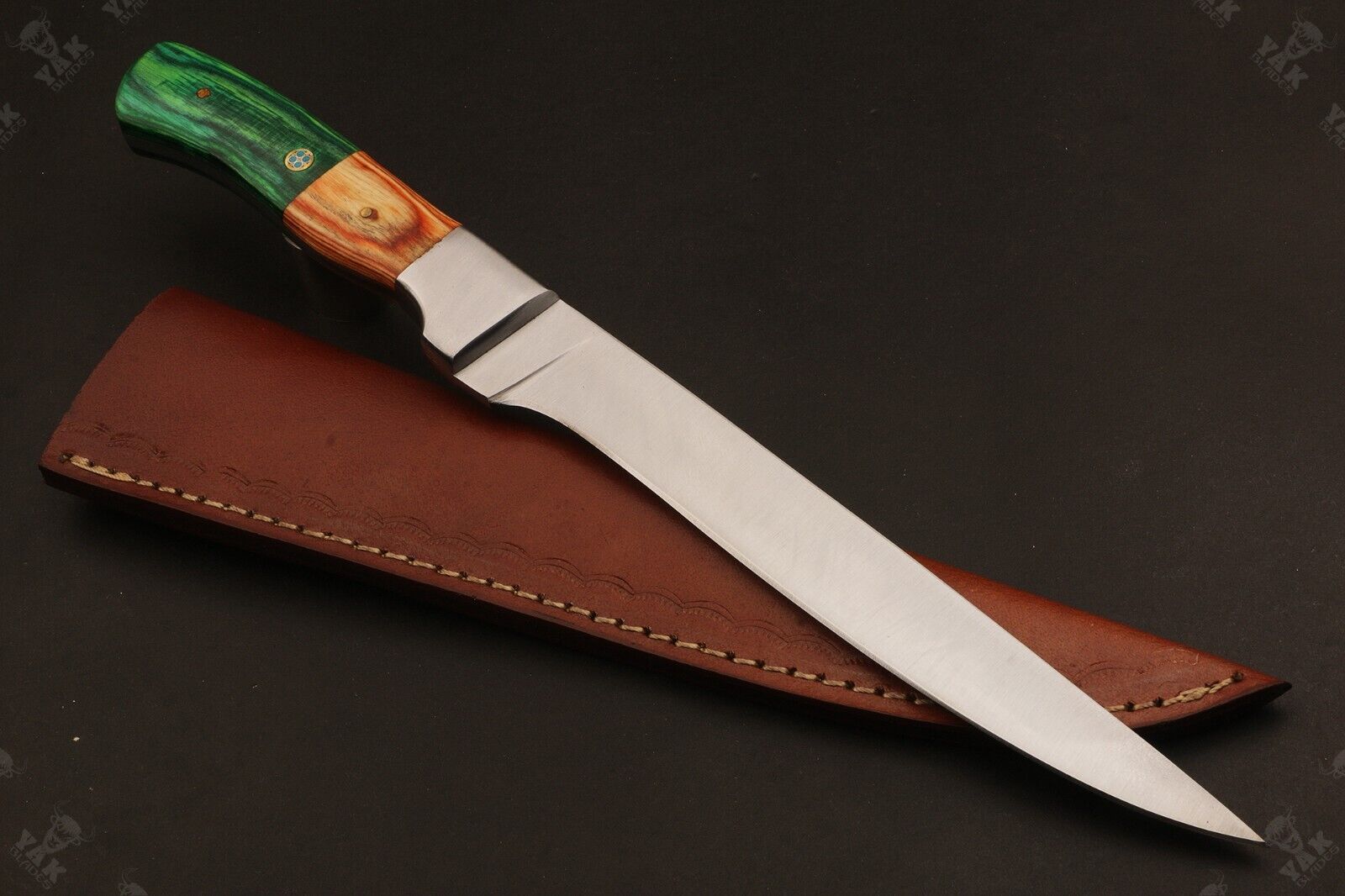 13.5" Custom Handmade D2 Steel Fillet Knife Best Fillet Knife & Sharp Fillet Knife W/Sheath