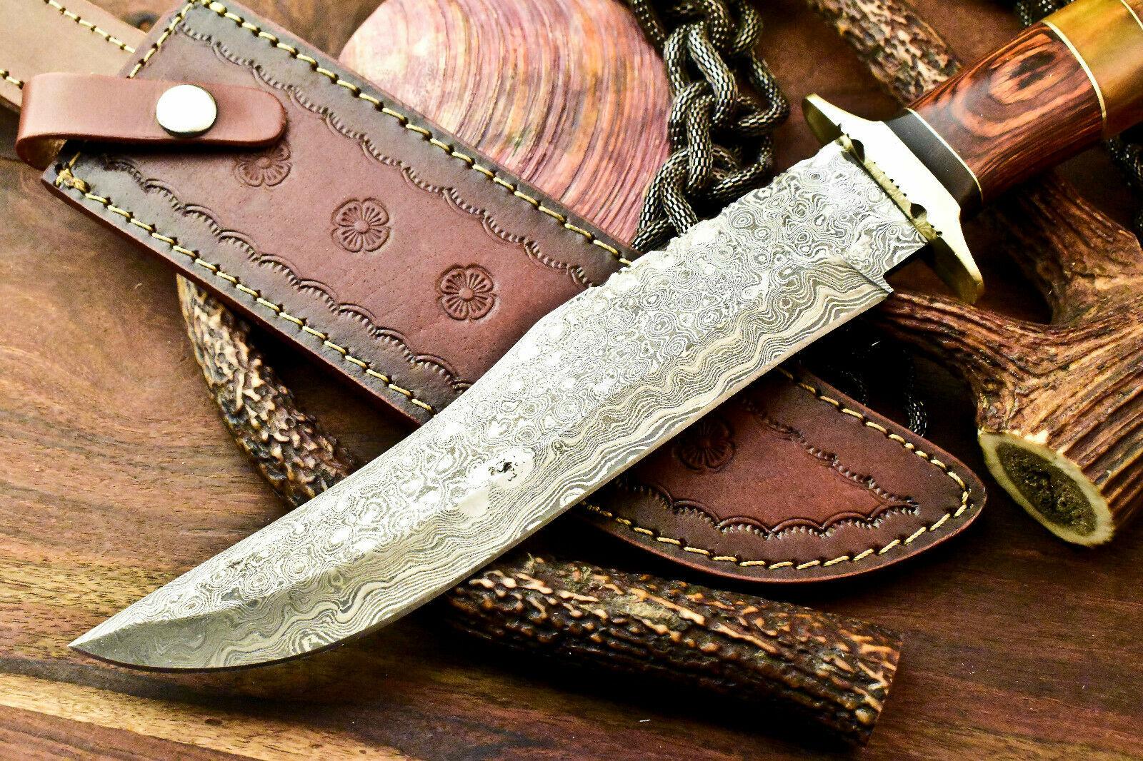 Experience the ultimate craftsmanship with the Heritage Forge 13.5" Handmade Damascus Bowie Hunting Knife. Featuring a hand-forged Damascus steel blade made from 1095HC and 15N20 high carbon steel, this knife showcases approximately 384 folded layers, acid-etched to reveal a striking layered pattern. Oil-tempered to 58-60 HRC, the blade delivers exceptional sharpness and durability, making it perfect for hunting, camping, and outdoor survival.