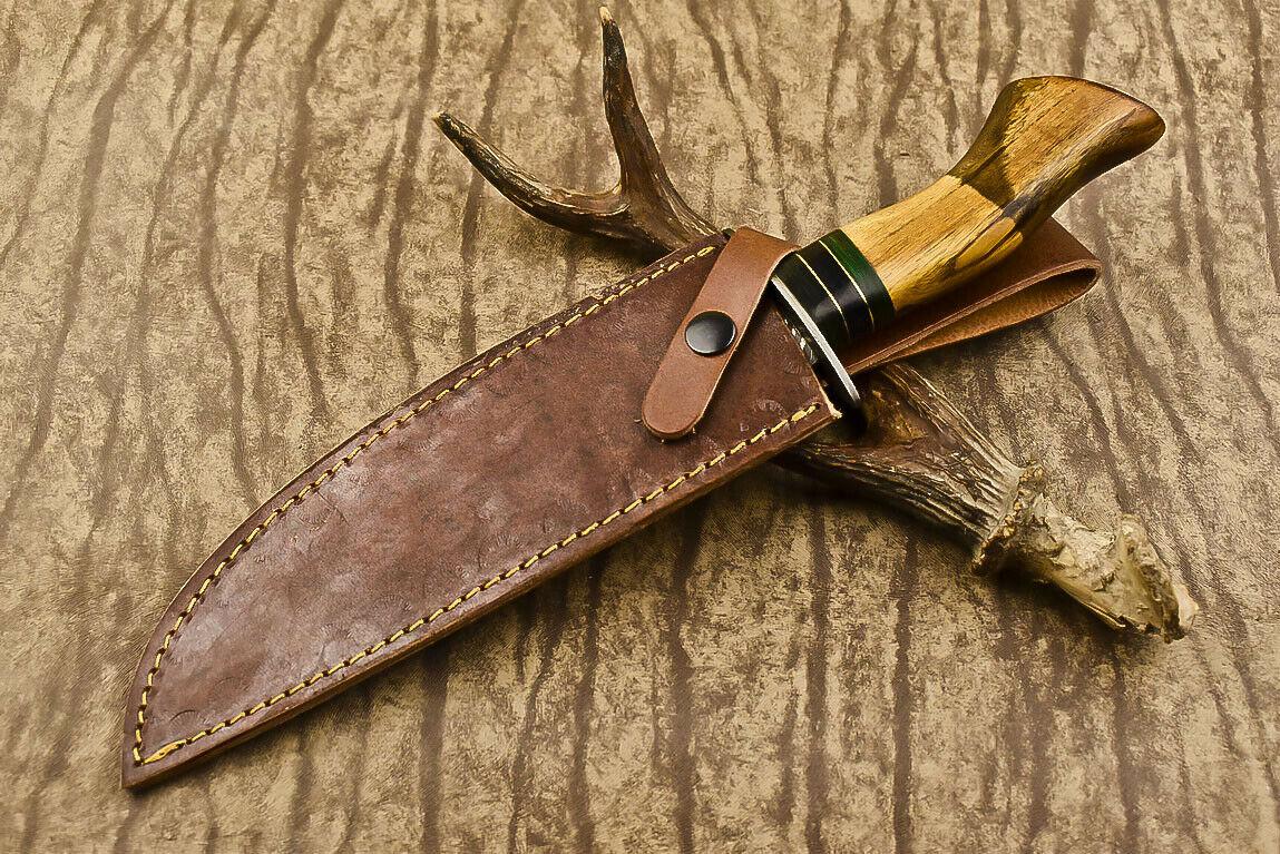 13.5" Heritage Forge Damascus Steel Bowie Knife | Olive Wood Handle