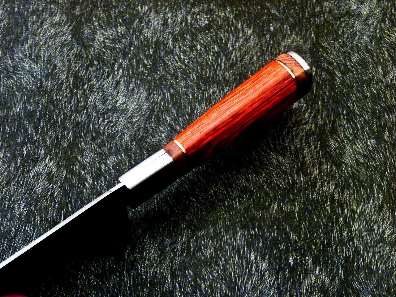 This 13-inch Custom Hand Forged Damascus Steel Chef Knife is a masterpiece of craftsmanship, designed for both professional chefs and passionate home cooks. Featuring an 8-inch razor-sharp blade made from 512 layers of 1095 and 15N20 high carbon Damascus steel, this knife offers unmatched durability and stunning aesthetics. The 5-inch hardwood handle is complemented with brass spacers and a handmade steel bolster, providing exceptional grip, balance, and long-lasting performance. The 4 mm thick blade is expertly heat treated, achieving a Rockwell hardness of 50–54 at the edge and 42–45 along the spine, ensuring excellent edge retention and resilience. With intricate Damascus patterns created through hours of skilled forging, this knife combines functionality with beauty, making it a perfect addition to any kitchen or collection.