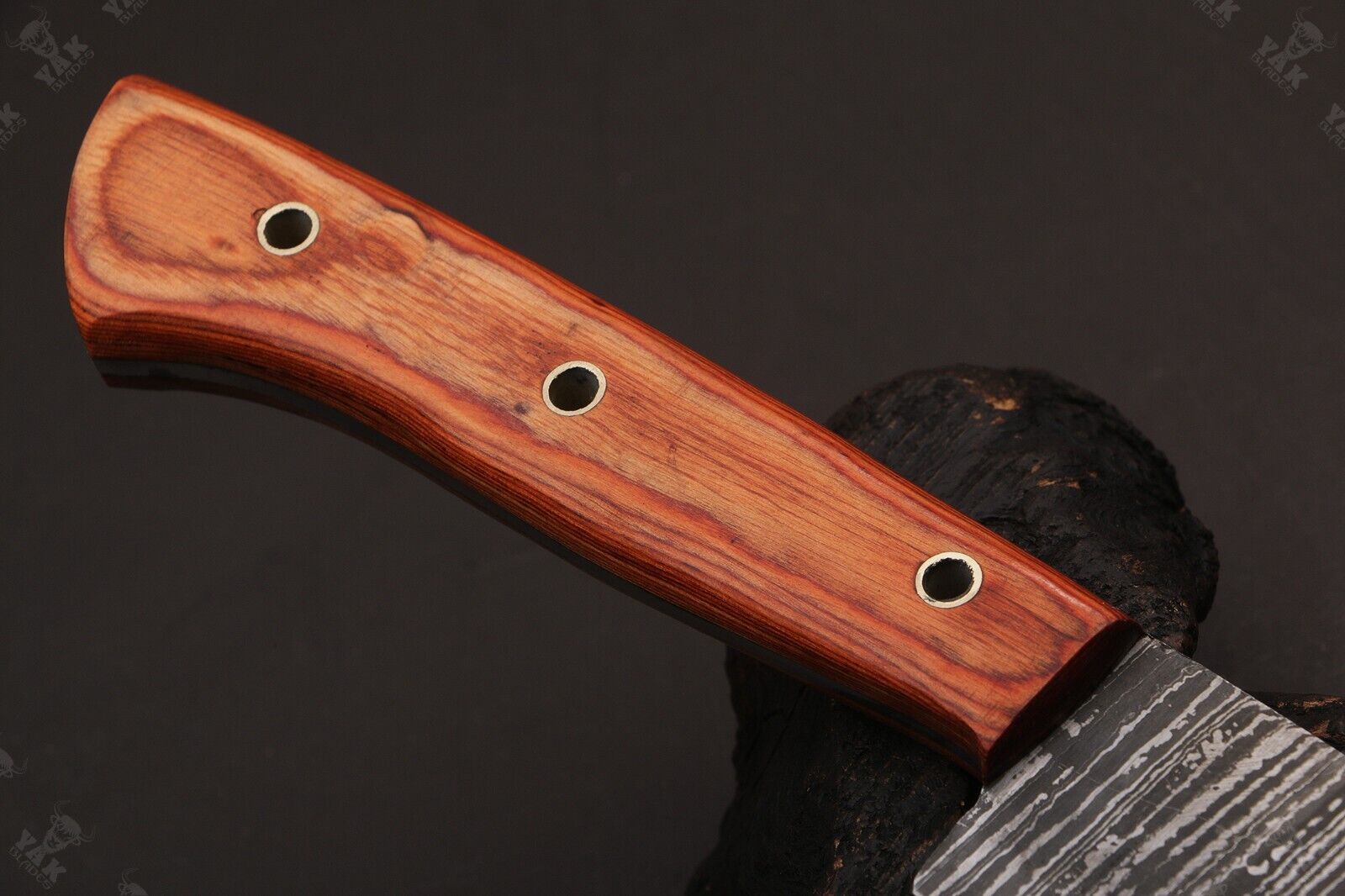 This exquisite 13-inch Sentoku Chef Knife is hand-forged from premium Damascus steel, making it both a stunning and highly functional kitchen tool. The blade is crafted with hours of meticulous forging, producing layers upon layers that flow seamlessly to the cutting edge, creating a microscopic saw-blade effect that stays sharp longer than ordinary knives. The handle is made from stained camel bone and natural wood with brass spacers, paired with a handmade Damascus steel bolster for superior balance and durability. Fully functional and 100% handmade, this knife is ideal for chefs, cooking enthusiasts, hunters, and outdoor adventurers who value precision, strength, and unique design.