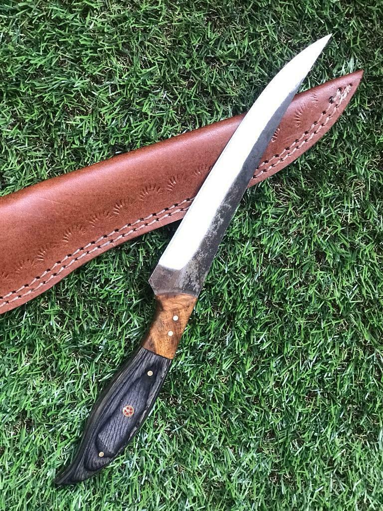 This 13" Custom Handmade D2 Steel Fillet Knife is designed for anglers, hunters, and outdoor professionals who demand durability and precision. If you are searching for the best fillet knife, reliable fillet knives, or simply a good fillet knife, this handcrafted blade delivers professional performance. Ideal as a fillet knife for fish, this razor sharp fillet knife ensures smooth and clean filleting. Whether you call it a filet knife or a fish fillet knife, this knife is perfect for fishing, camping, hunting, and kitchen tasks. This premium custom fillet knife combines strength, balance, and long lasting sharpness in a unique handmade design.