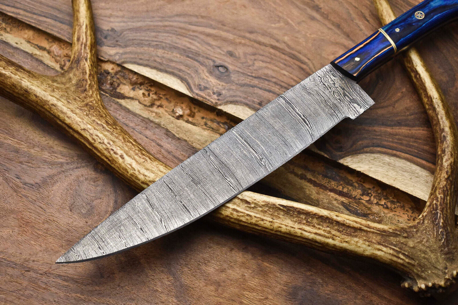 This 13-inch custom handmade Damascus steel kitchen chef knife is a perfect blend of beauty, durability, and performance. Expertly crafted from high-quality Damascus steel, the blade features a stunning wavy pattern and is heat-treated for exceptional strength and sharpness. The full tang design ensures superior balance and control, making it ideal for precise slicing, chopping, and dicing in the kitchen. Its ergonomically designed handle offers a comfortable and secure grip, allowing for long hours of effortless use. Whether you’re a professional chef or a cooking enthusiast, this knife is a functional work of art that will elevate your culinary experience.