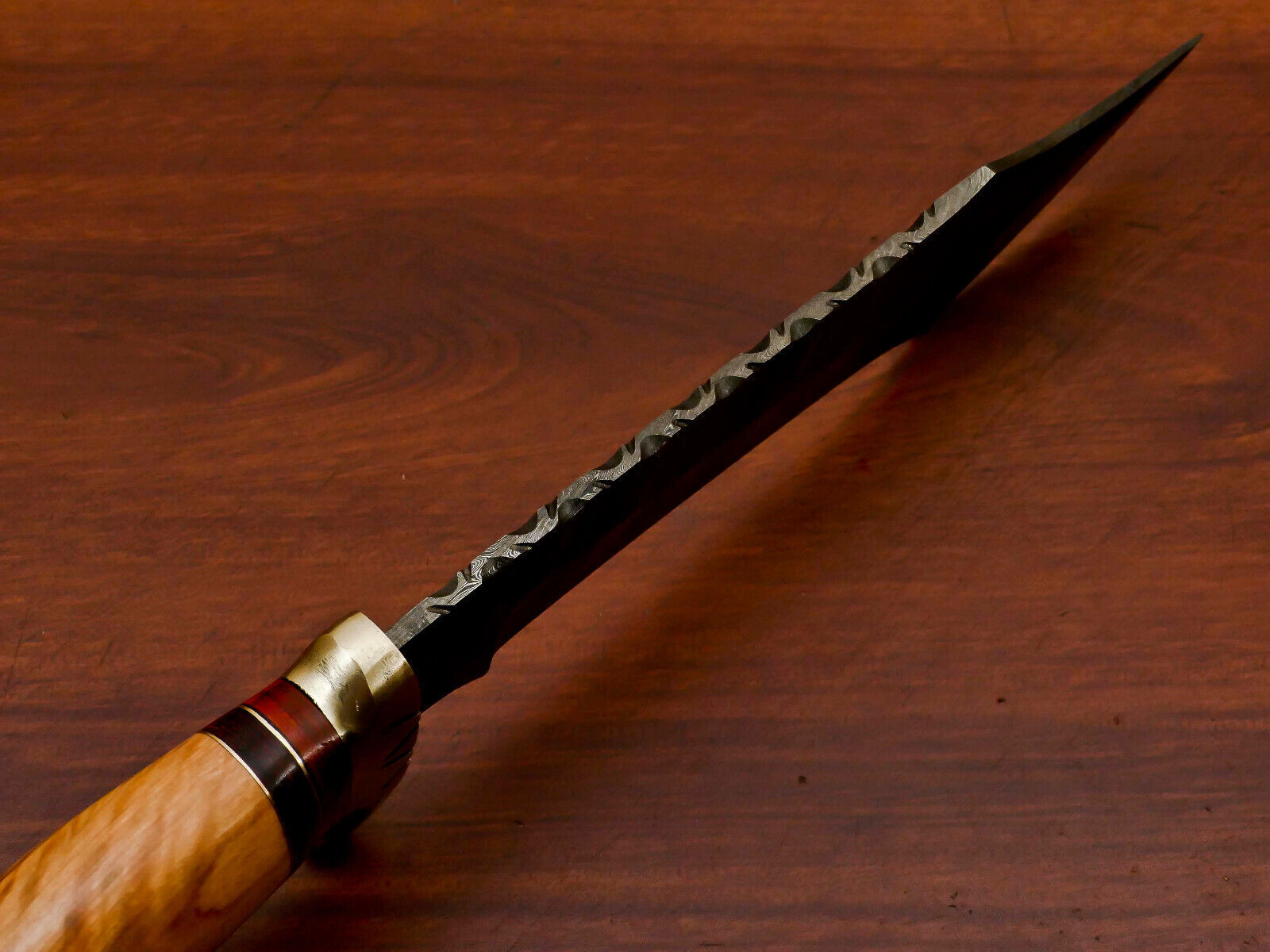 The handle, crafted from rich olive and pakka wood, delivers both elegance and ergonomic comfort for a secure grip. Measuring 13.0" overall with an 8.0" blade, this Bowie knife is perfectly balanced for precision cutting and heavy-duty use. Each knife comes with a matching sheath, ready for immediate use or display. Heritage Forge ensures every knife is hand-finished, merging traditional artistry with modern performance to create a functional outdoor tool and collectible masterpiece.