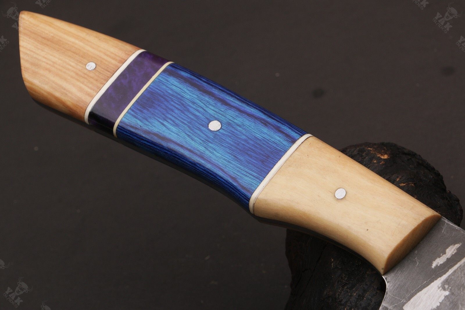 The Fire Storm Custom Handmade Damascus Steel Chef Knife is a perfect combination of artistry and functionality. Each knife is handcrafted, making every piece unique. The Damascus pattern and wood texture may vary slightly from the pictures, and natural cracks in the bone handle add to its distinct character, making your knife one-of-a-kind. The blade is forged with precision, achieving a hardness of 58-60 HRC, which allows it to hold a sharp edge for a long time, while the 3.5 mm thick blade ensures durability and excellent cutting performance. The handle is made of resin with brass pins, providing both comfort and stability during use. All our knives are carefully hand-forged and tested to meet high-quality standards, ensuring optimal toughness, strength, and edge retention. Whether for professional or home kitchen use, this knife delivers a reliable and beautiful cutting experience. If you have any questions, feel free to contact us; we aim to respond within 8 hours. For any issues, please reach out before leaving feedback, and we will resolve them promptly.