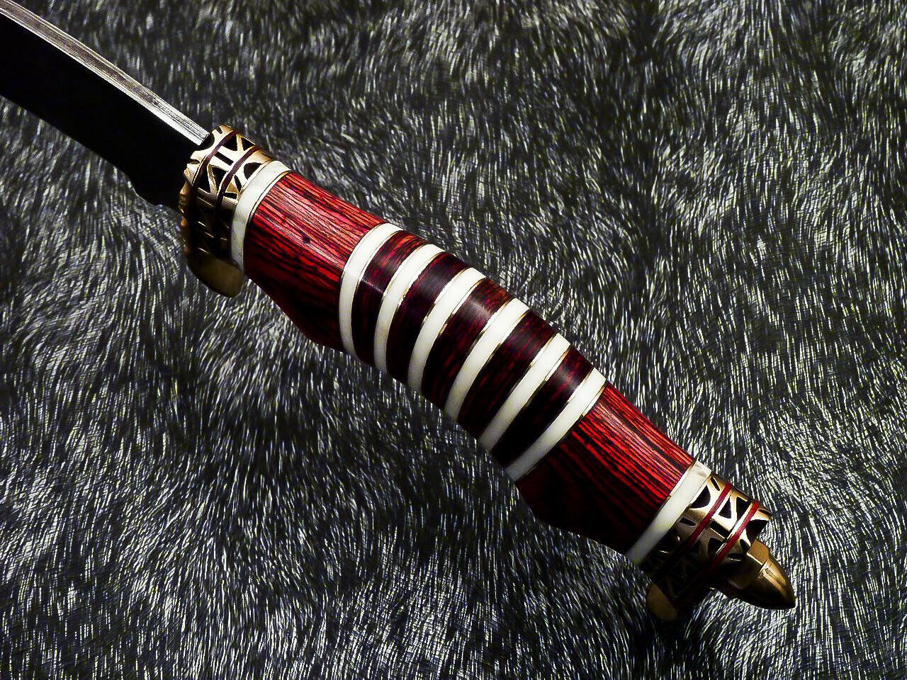 13" Handmade Damascus Bowie Hunting Knife with Hard Wood Handle