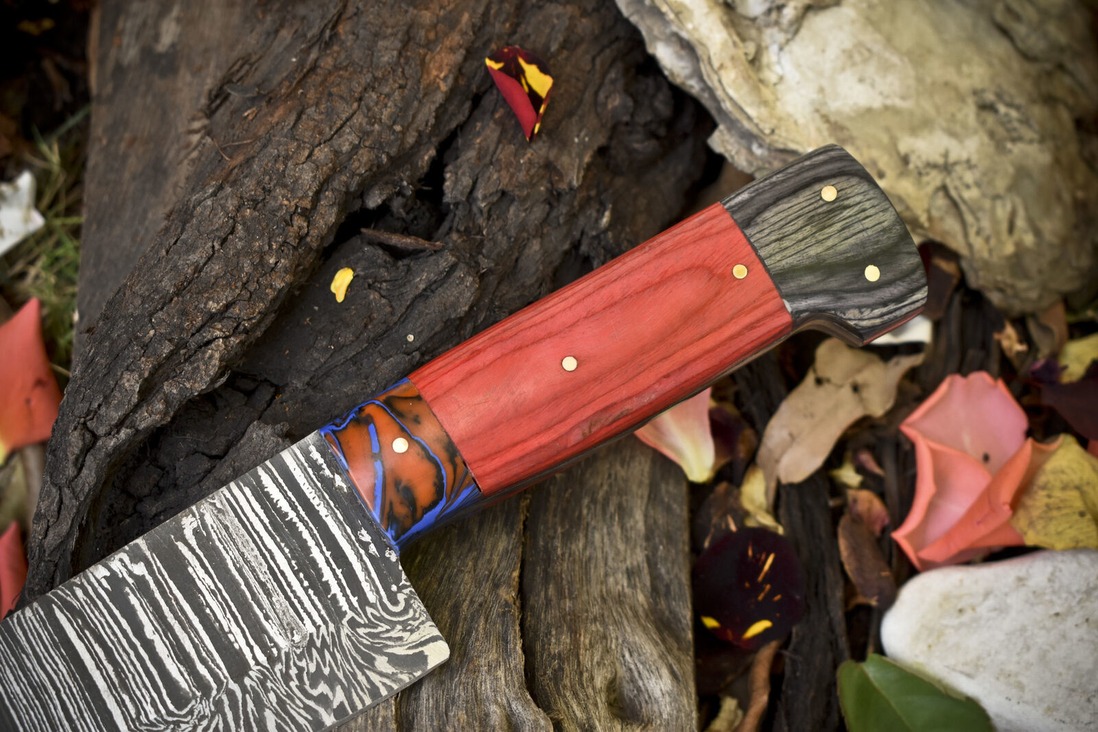 13" Handmade Twist Damascus Steel Chef Knife – Hard Wood Handle with Micarta Bolster