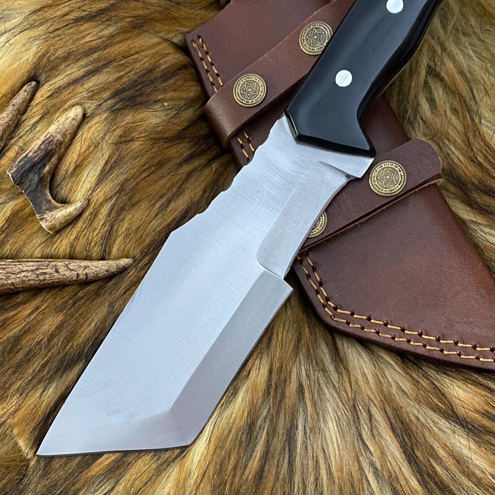 13 Inch Hand Forged D2 Steel Tanto bowie Hunting Knife with Bull Horn Handle