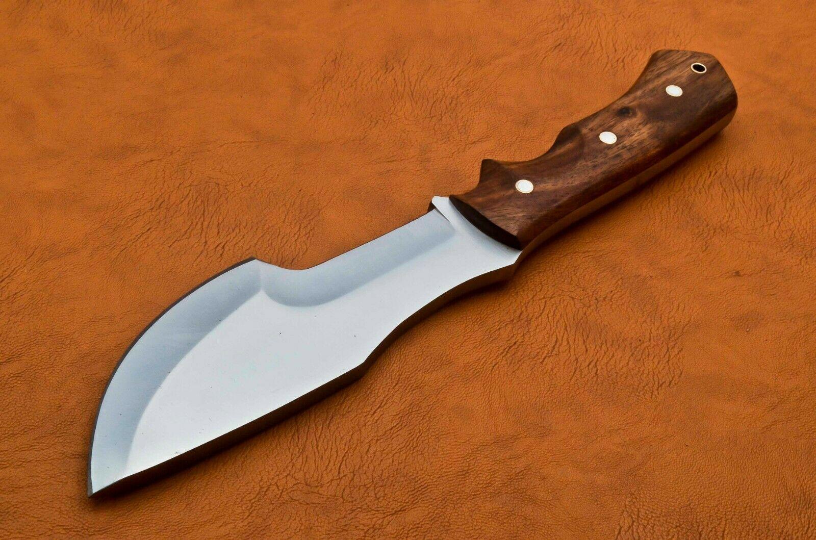 Expertly crafted in Pakistan, the 8-inch blade is heat-treated to a Rockwell hardness of 58–60 HRC, ensuring optimal durability and sharpness. Paired with a 5-inch ergonomic rosewood handle, this knife delivers both beauty and control. Its full tang construction ensures strength throughout, while the contoured wooden grip provides a comfortable, slip-resistant hold.